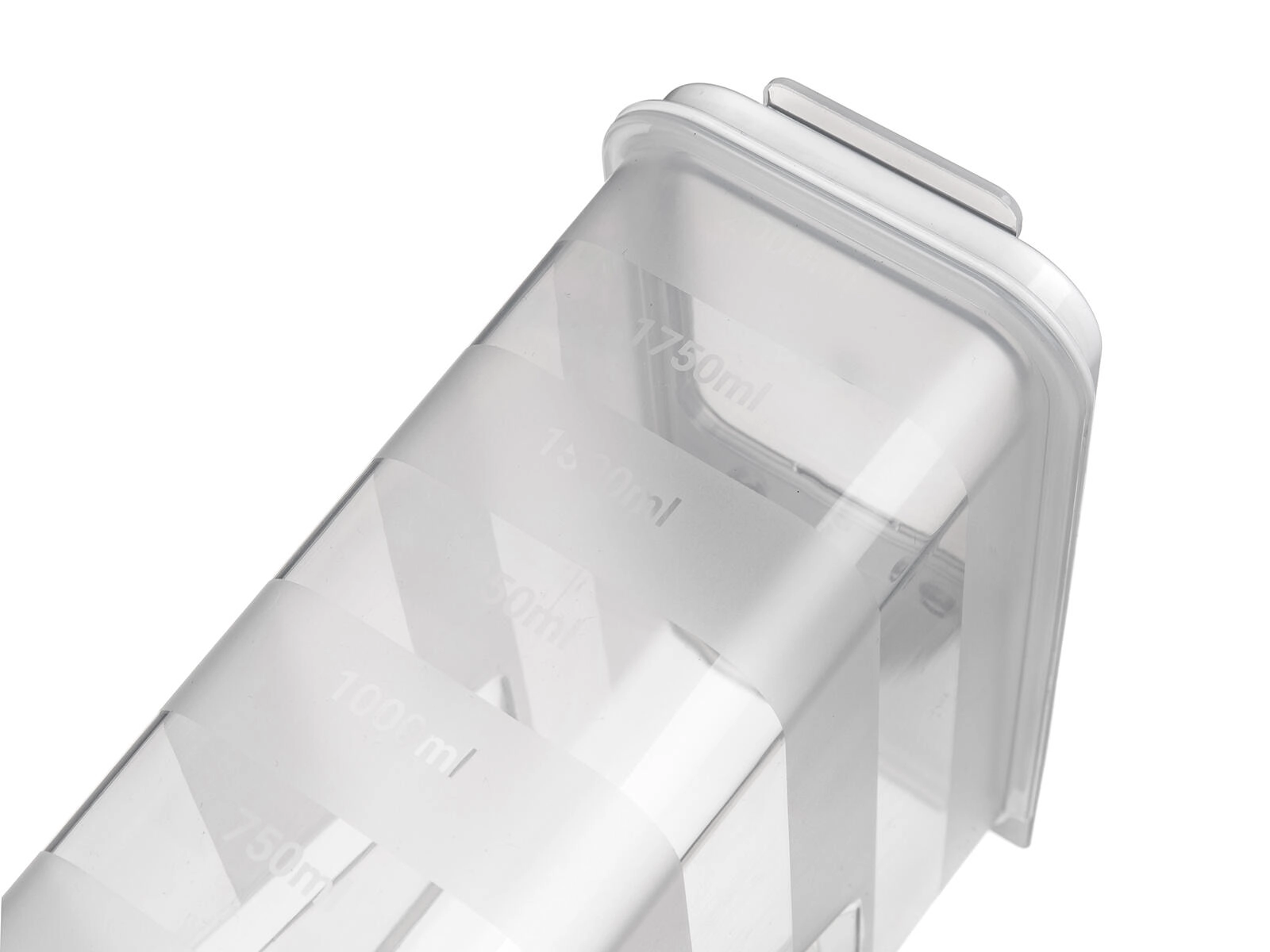 Vgrajene merilne oznake v koraku 250 ml olajšajo natančno doziranje in nadzor zalog. Posoda je primerna za shranjevanje testenin, stročnic, riža, moke, sladkorja in drugih suhih živil. Zaradi kompaktne pravokotne oblike se dobro prilega policam in se zlahka kombinira z drugimi organizatorji.