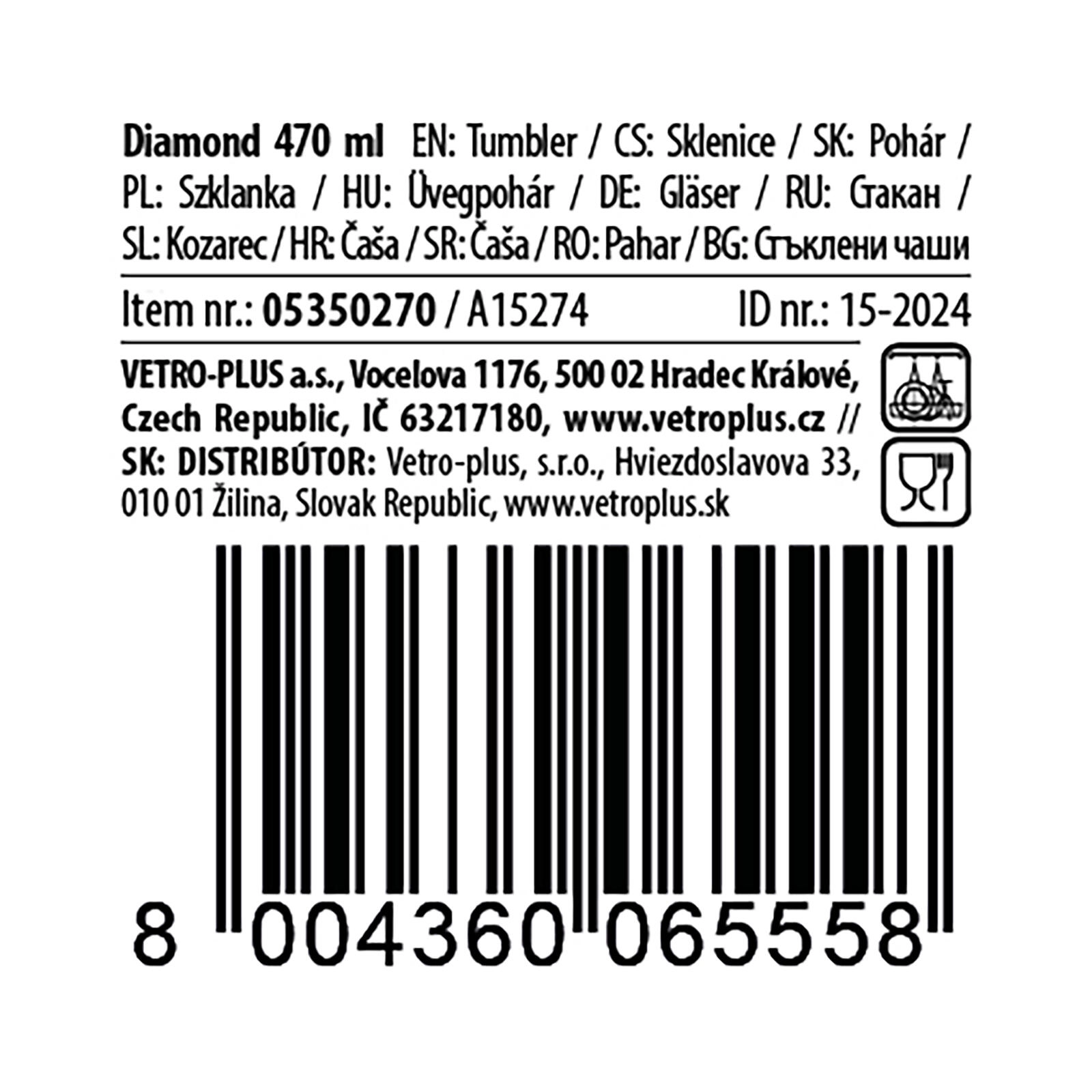 Obogatite svojo mizo s stilskim kozarcem DIAMOND s prostornino 470 ml. Zaradi elegantnega brušenega videza in izrazite vijolične barve je odlična izbira za vsakodnevno uporabo in slovesne priložnosti. Kozarec je zasnovan za serviranje hladnih napitkov – od vode in limonad do koktajlov.