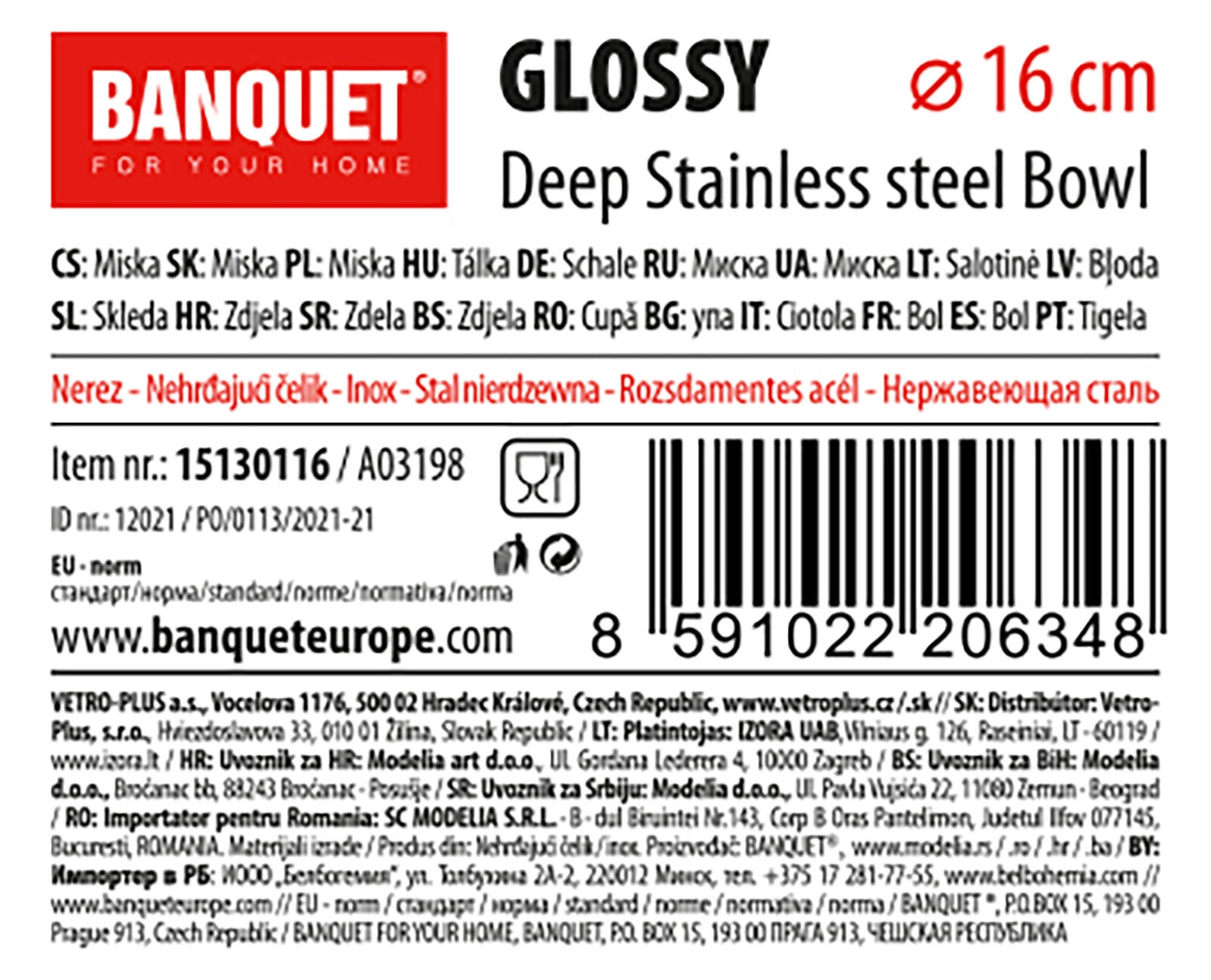 Praktična in trpežna nerjaveča skleda Glossy 16 cm za vsakodnevno uporabo v kuhinji. Je globoka, higienska, enostavna za vzdrževanje in primerna za pomivanje v pomivalnem stroju.