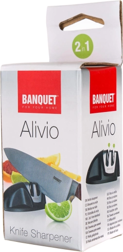 Ohranjajte svoje jeklene kuhinjske nože vedno ostre s praktičnim brusilcem Alivio 2v1. Dve ločeni reži zagotavljata hitro obnovo rezila in končno glajenje za natančno rezanje brez napora. Ergonomska oblika skupaj z nedrsečo osnovo zagotavlja stabilnost in varno vodenje rezila.