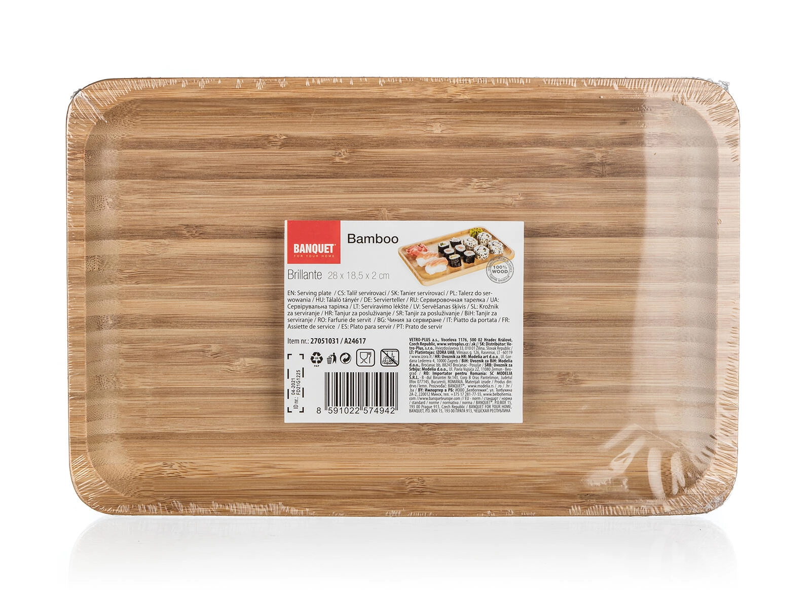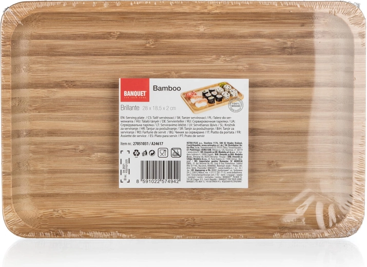 Dimenzija 28 × 18,5 cm nudi dovolj prostora za različne dobrote. Odličen za serviranje suši setov, sirov ali sladkih prigrizkov.