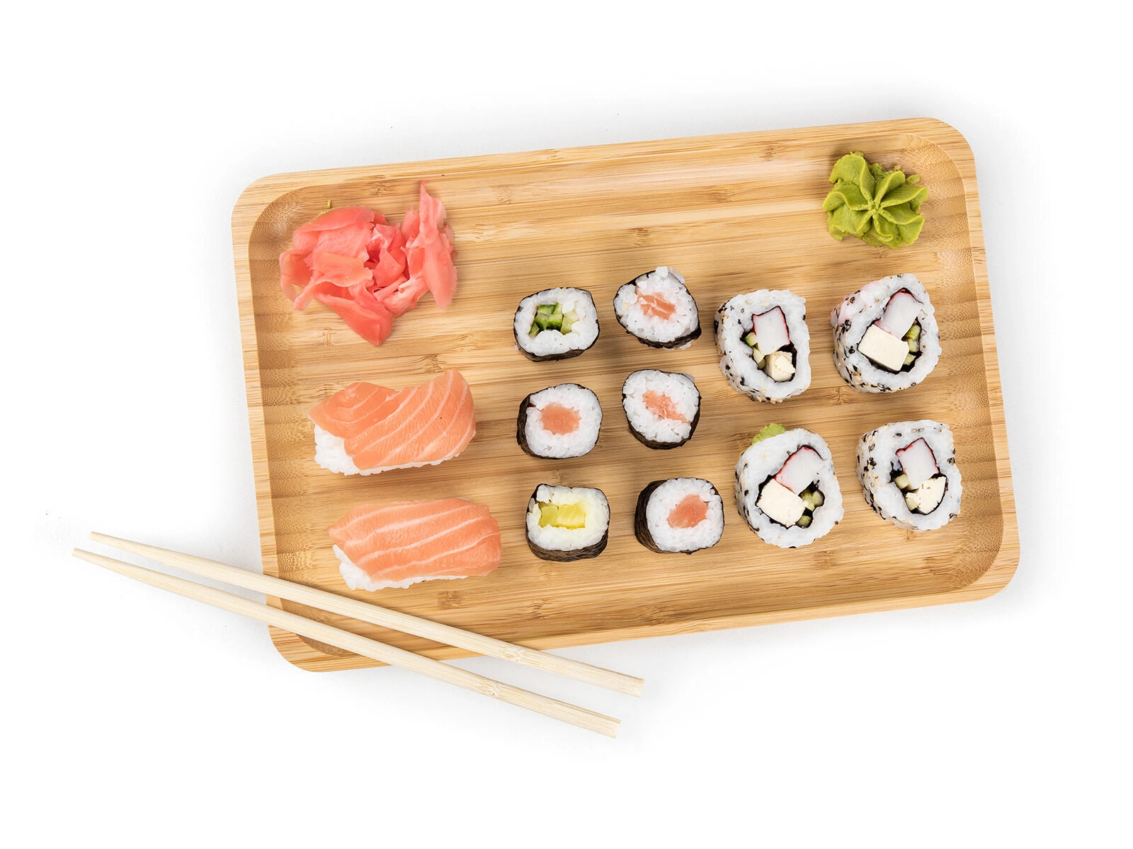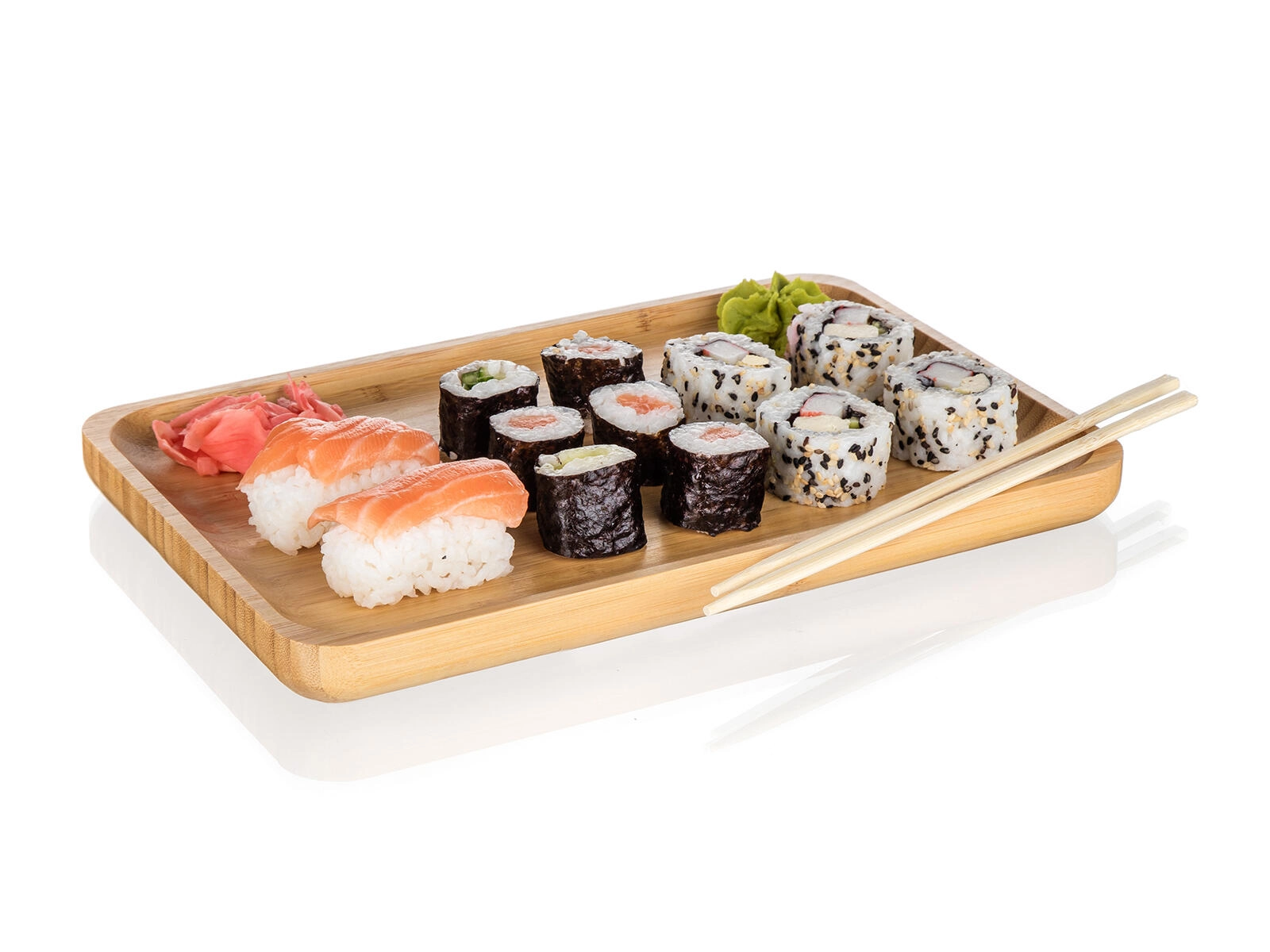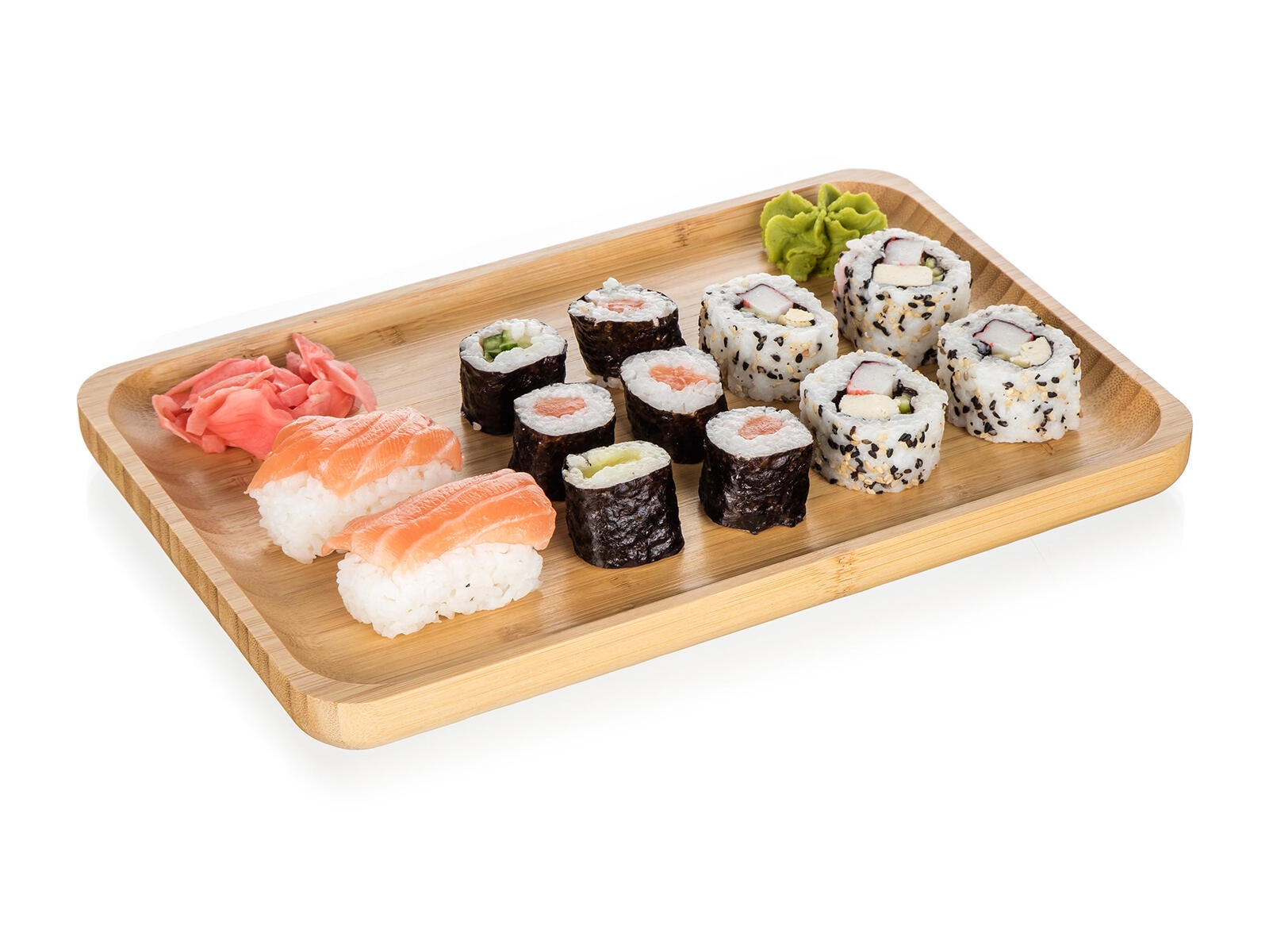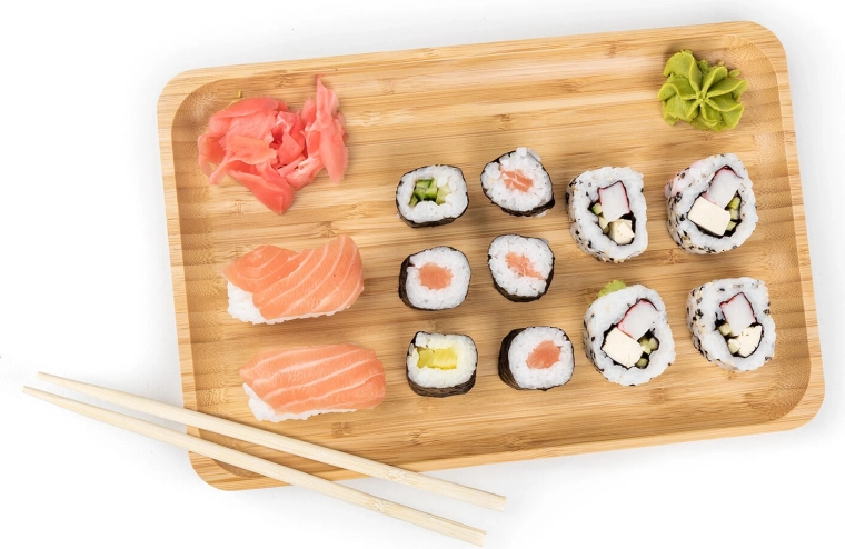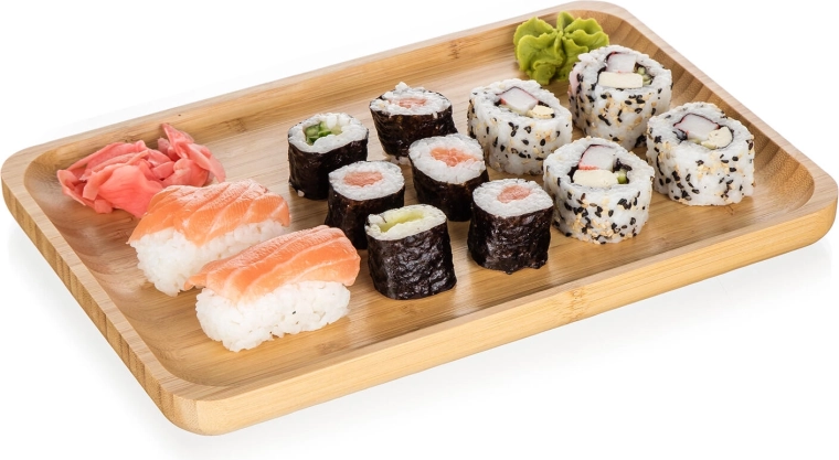 Primeren je za suši, prigrizke, sire, sadje ali sladice, minimalistični dizajn pa se lepo poda tako modernim kot naravno zasnovanim interierjem. Površina je gladka in nežno poudari lesno teksturo, zato bodo vaše jedi še bolj izstopale.