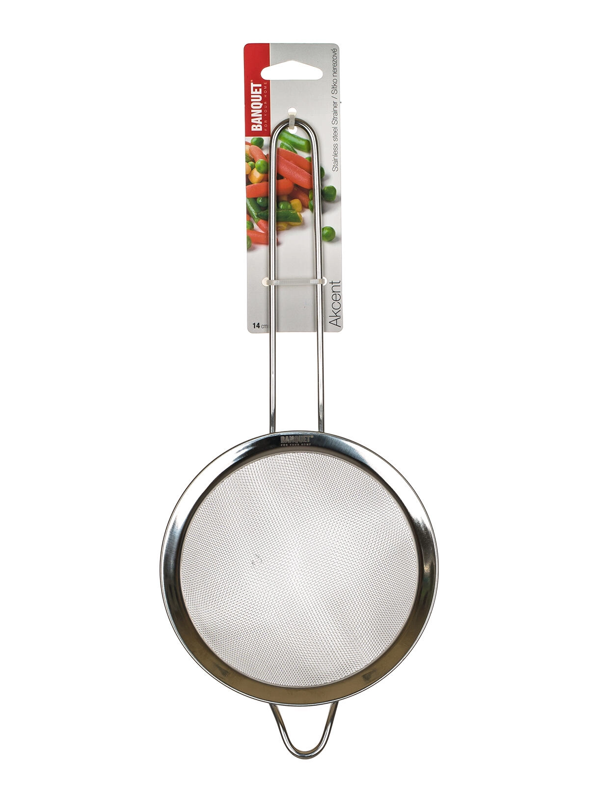 Praktično kuhinjsko cedilo AKCENT s premerom 14 cm je idealno za cejenje tekočin, izpiranje sestavin in fino filtriranje. Odporno nerjavno jeklo, udoben kovinski ročaj z obešalnim ušesom ter fina mreža 0,28 mm z gostoto 20 očes/cm² zagotavljajo čist in hiter rezultat pri vsakodnevnem kuhanju.