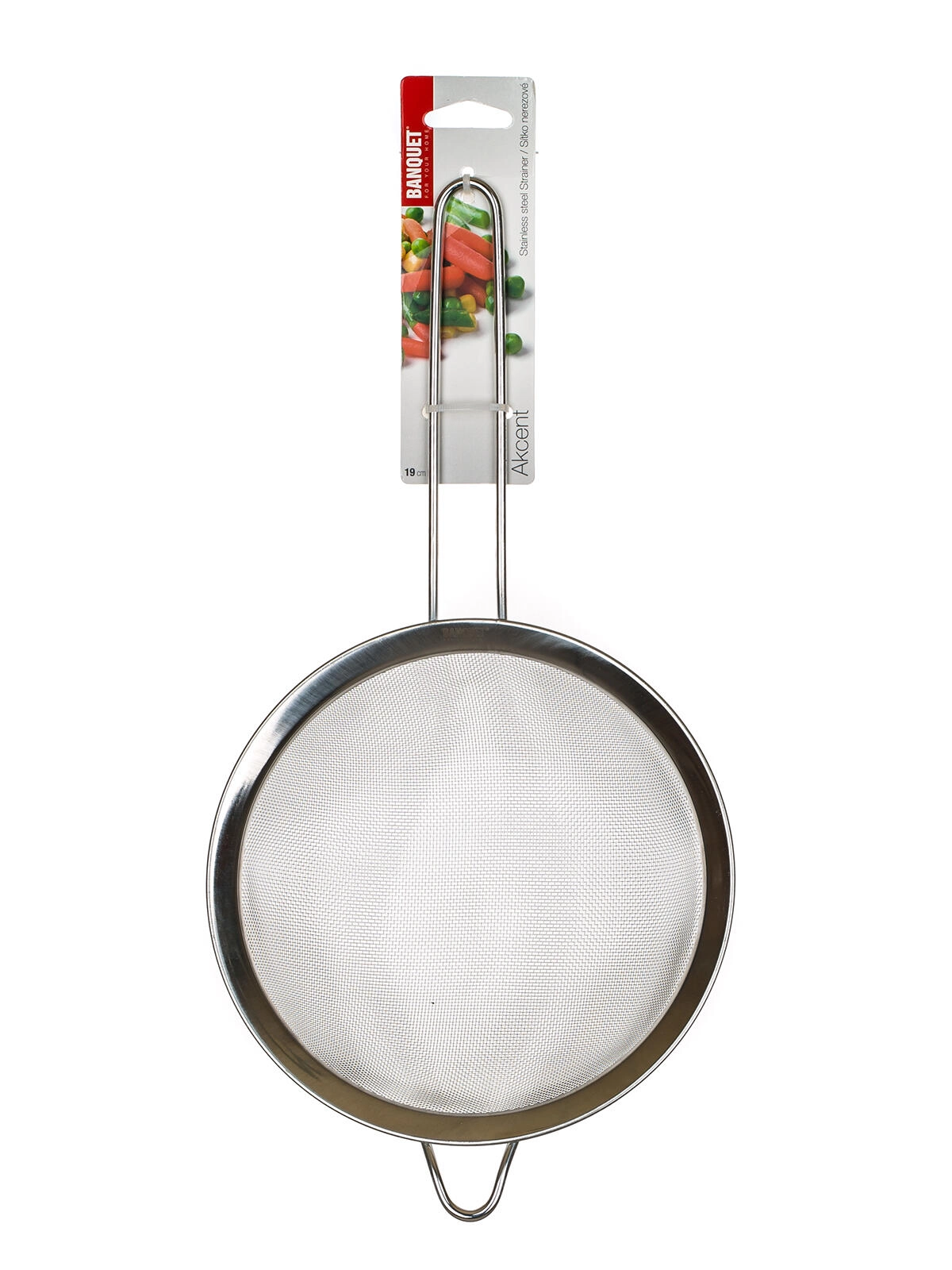 Praktično kuhinjsko cedilo s premerom 19 cm iz visokokakovostnega nerjavnega jekla AKCENT za vsakodnevno uporabo. Idealno za cejenje tekočin in napitkov, z udobnim kovinskim ročajem z obešalnim ušescem. Fino sito z 20 očesi na cm2 in debeline žičke 0,28 mm zagotavlja natančno filtracijo in dolgo življenjsko dobo.