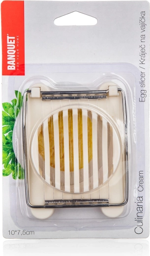 Praktičen rezalnik za jajca CULINARIA Cream olajša vsakodnevno pripravo solat in obloženih krožnikov. Z enim pritiskom ustvarite enakomerne rezine zahvaljujoč čvrstim nerjavečim strunam. Odporna plastična osnova z zibelko jajce drži stabilno, naprava pa je primerna za pomivalni stroj za preprosto čiščenje.