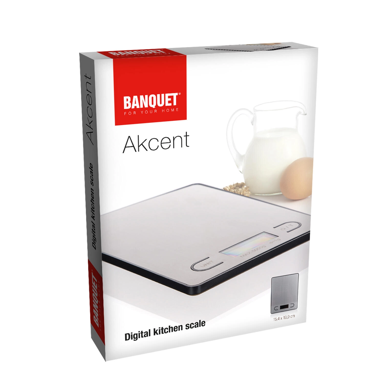 Kuhinjska digitalna tehtnica AKCENT v sodobni nerjavni izvedbi je idealen pomočnik za natančno doziranje sestavin pri kuhanju in peki. Ravna in kompaktna zasnova olajša shranjevanje in čiščenje, medtem ko pregleden LCD-zaslon in upravljanje na dotik zagotavljata udobno uporabo.