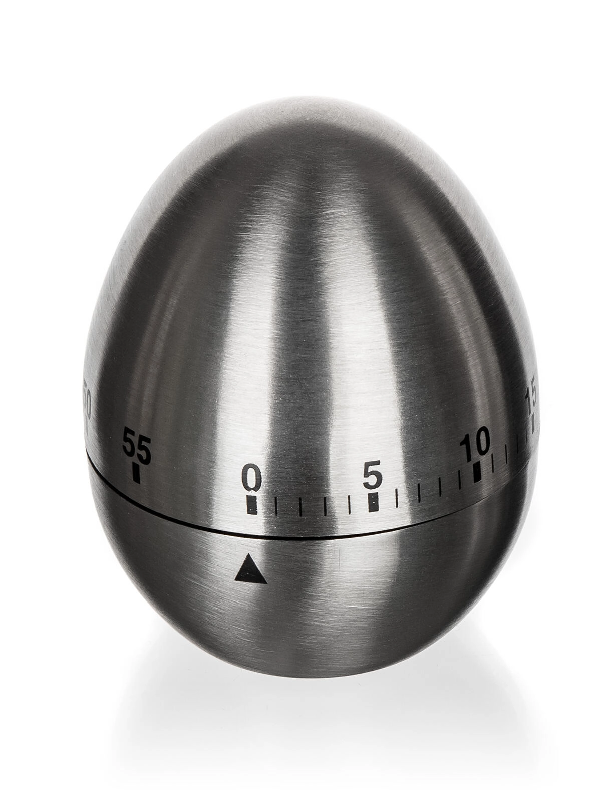 Stilski kuhinjski časomer v obliki jajca iz trpežnega nerjavečega jekla AKCENT je praktičen pomočnik za natančno merjenje časa pri kuhanju in peki. Zahvaljujoč mehanskemu upravljanju, jasnim minutnim oznakam in kompaktni višini 8 cm ponuja enostavno uporabo, dolgo življenjsko dobo in zanesljivo odštevanje brez baterij. Nerjaveča izvedba se poda vsaki sodobni kuhinji, z zvonenjem pa vas opozori, ko je čas potekel.