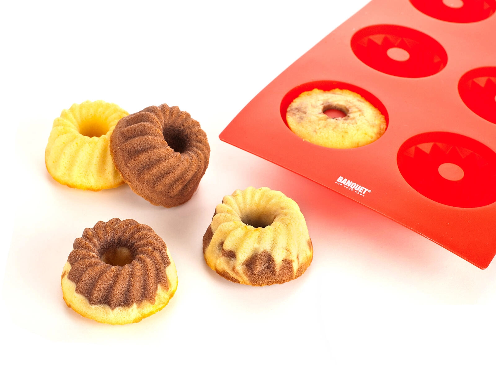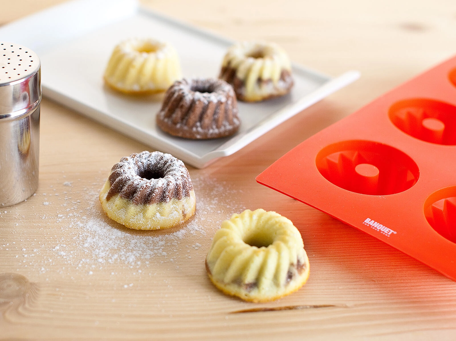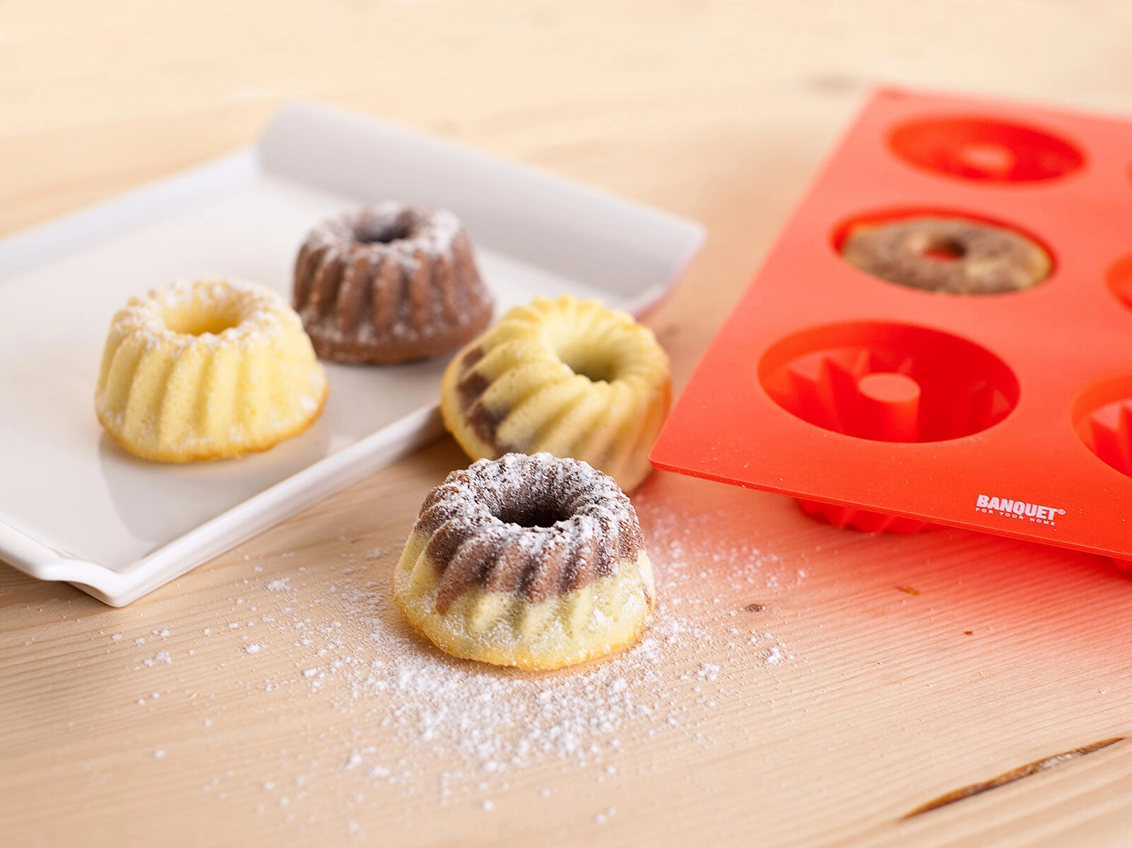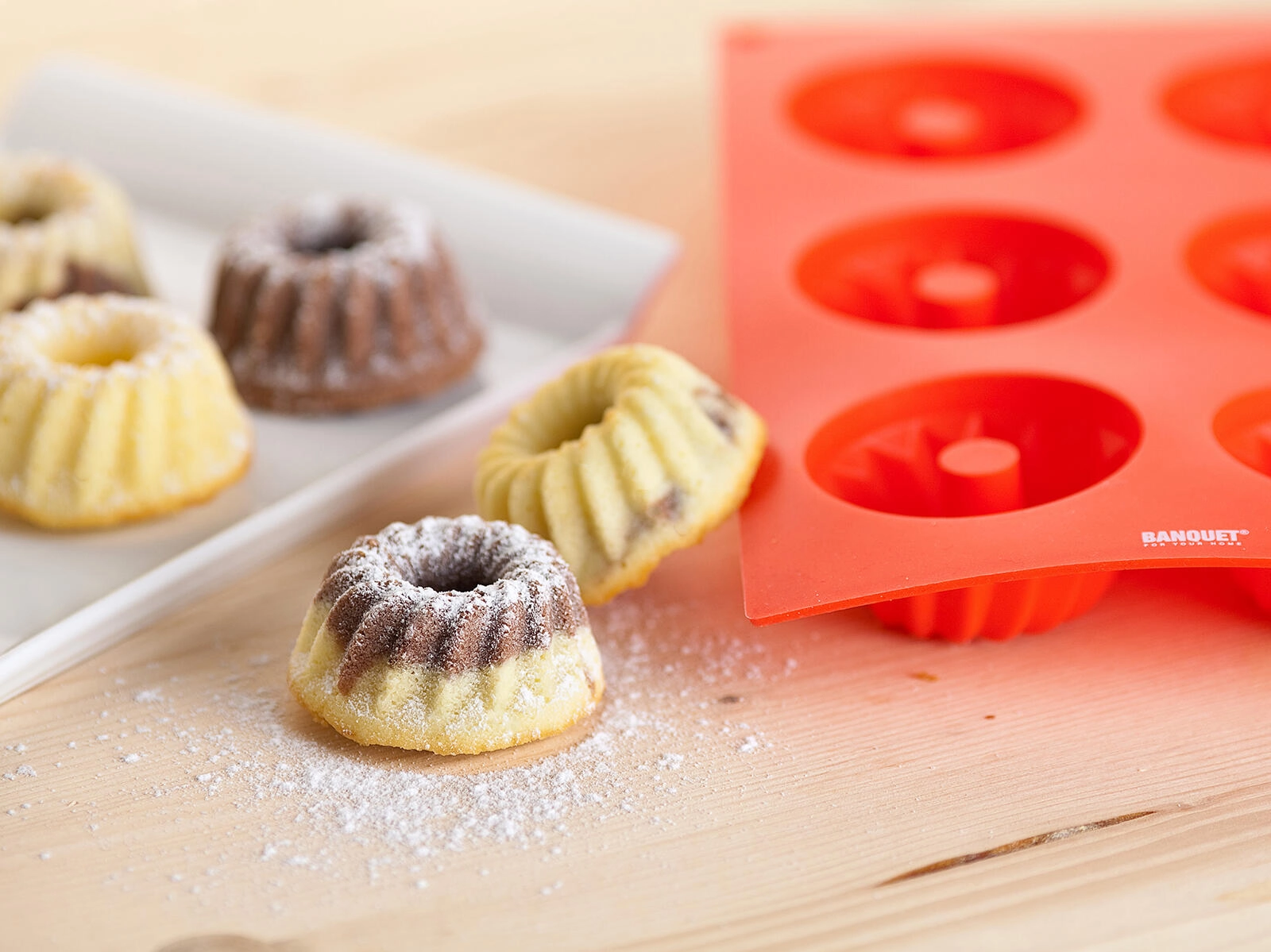 Prožen silikon zagotavlja, da se testo ne prijema, mini kuglofe pa enostavno odstranite iz pekača brez poškodovanja oblike.