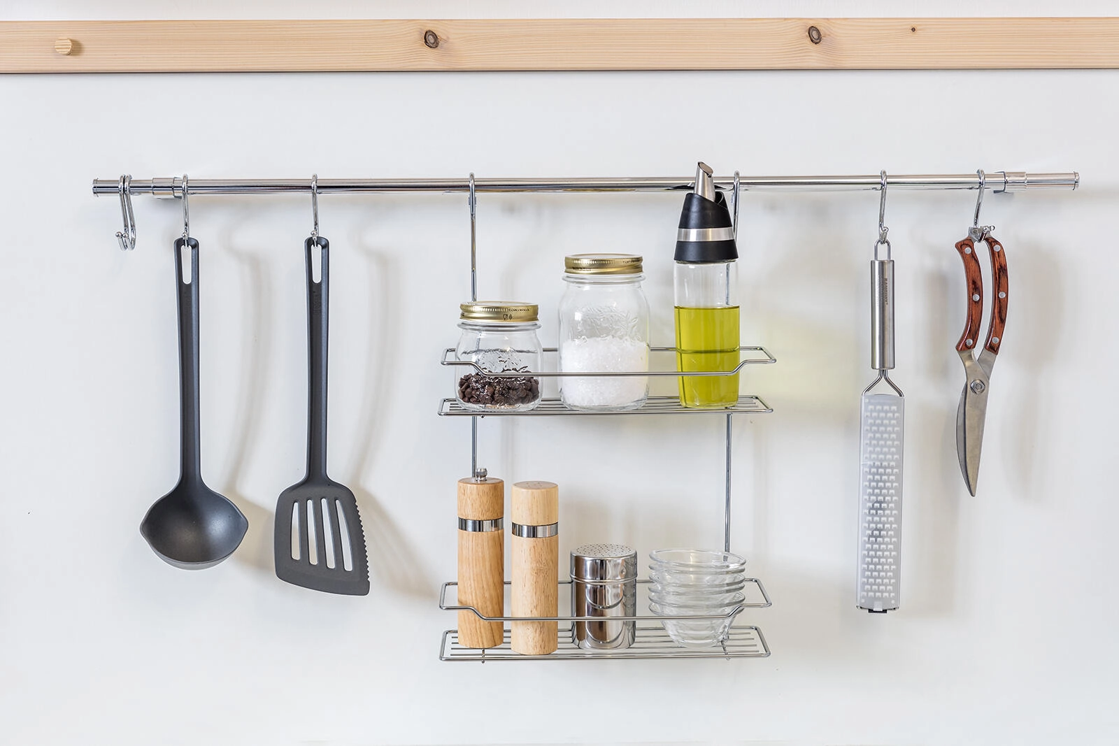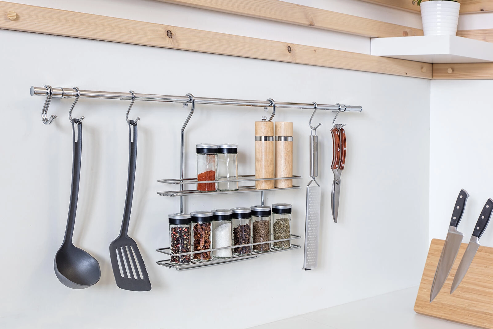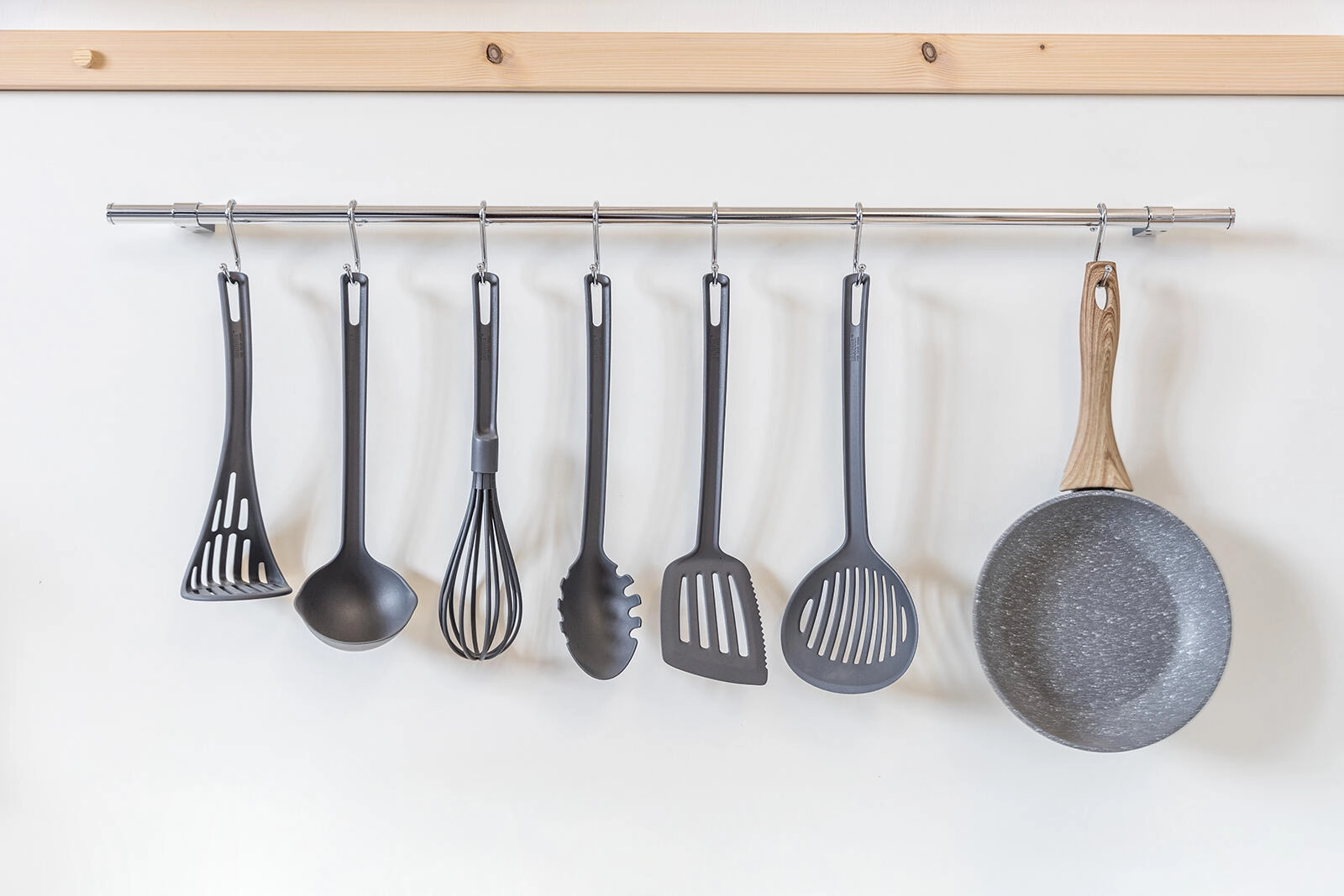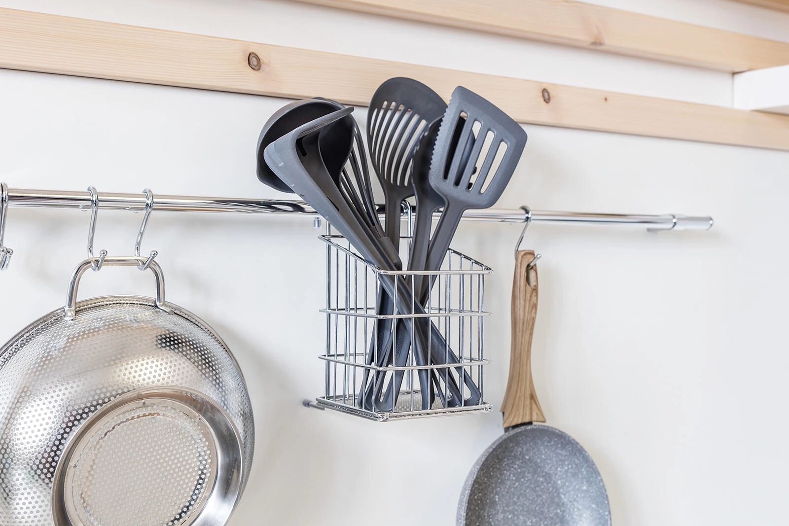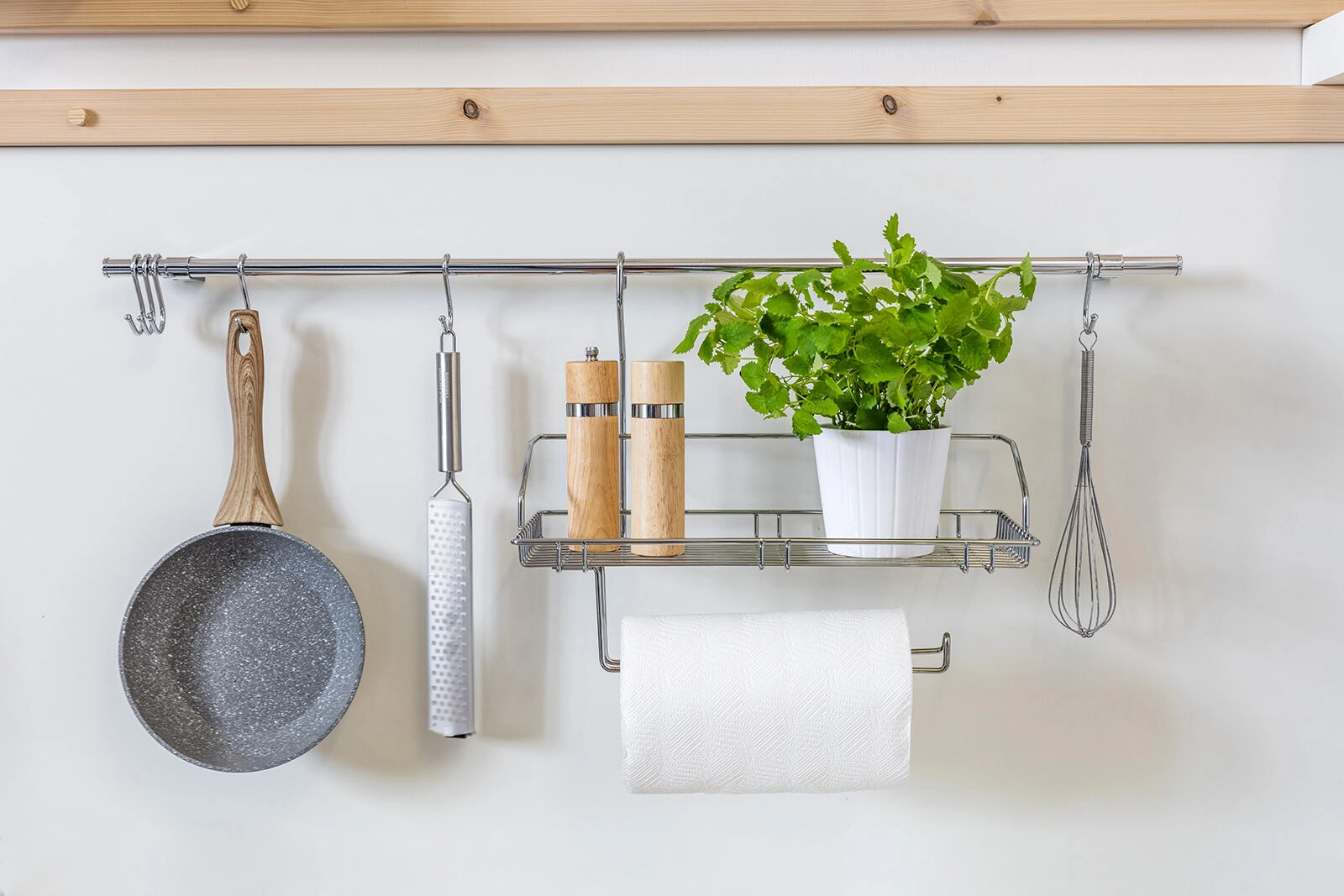 Na kljukice obesite zajemalke, metlice ali ponve in prihranite prostor na delovni površini.