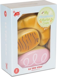 V kompletu so klasične vrste peciva in sladkosti v kompaktni škatli – popoln dodatek otroškim kuhinjam in tržnicam.