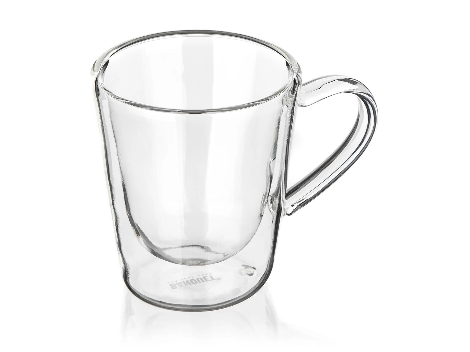 Uživajte v svojem espressu ali čaju v elegantnem lončku DOBLO s prostornino 120 ml. Dvojstensko borosilikatno steklo ustvarja izolacijski sloj, ki dlje ohranja pijače na želeni temperaturi in zagotavlja udoben oprijem brez neprijetnega segrevanja površine.