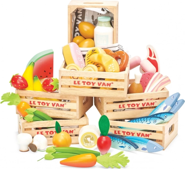 Lesena škatla z mesninami Le Toy Van ponuja odličen način, kako otroke naučiti o različnih živilih in pomembnosti uravnotežene prehrane. Vsebuje: