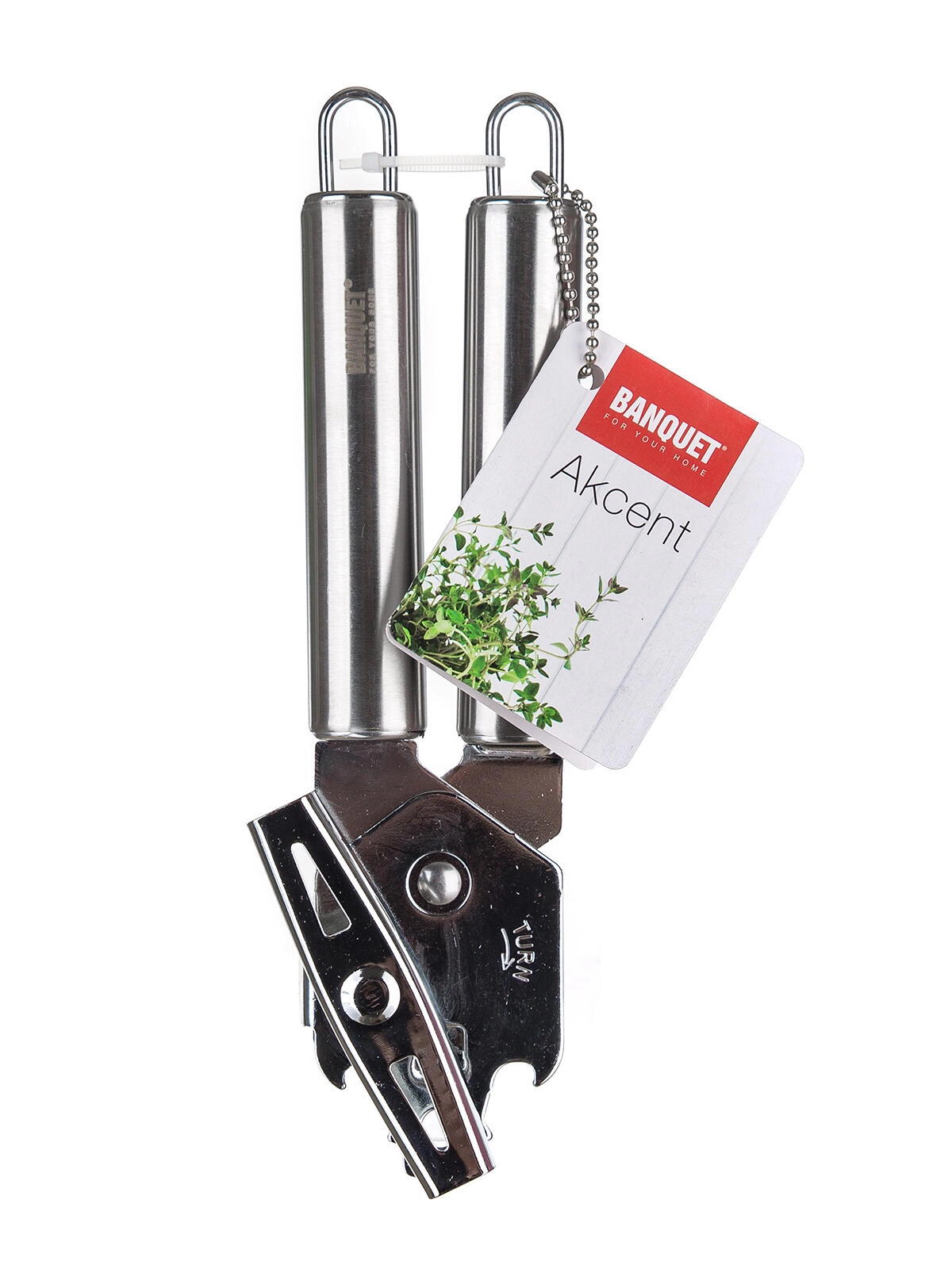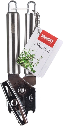 Praktični odpirač za konzerve AKCENT s klasičnim krilnim mehanizmom za hitro in udobno odpiranje. Izdelan je iz kakovostnega nerjavnega jekla, nudi dolgo življenjsko dobo in je zahvaljujoč očesu za obešanje vedno pri roki. Primeren za profesionalno in domačo uporabo.