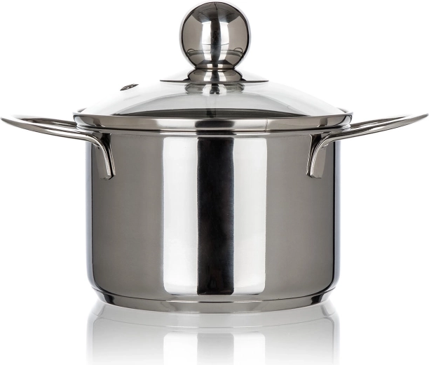 Robustno nerjavno jeklo (tip 201) z debelino stene 0,5 mm zagotavlja dolgo življenjsko dobo in enostavno vzdrževanje, medtem ko široka ročaja nudita varen oprijem. Lonec je združljiv z vsemi vrstami kuhalnih površin — plin, elektrika, steklokeramika in indukcija. Po kuhanju ga preprosto postavite v pomivalni stroj; primeren je tudi za uporabo v pečici.