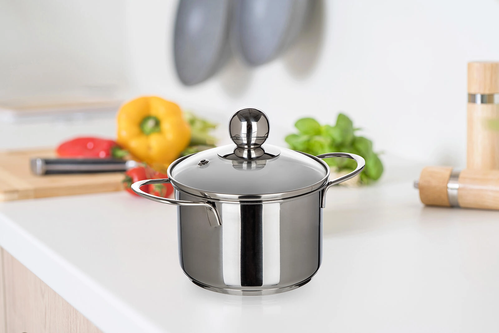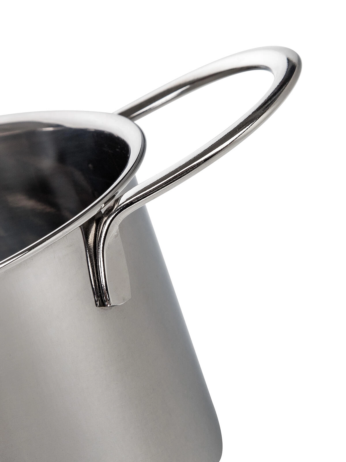 Praktičen in eleganten pomočnik za vsako kuhinjo: nerjavnojeklen lonec PICCOLO s prostornino 0,85 l obvlada hitro segrevanje in nežno prevretje. Premer 12 cm in višina 8 cm ga naredita odlično izbiro za majhne porcije, otroške obroke, omake ali taljenje masla in čokolade. Stekleni pokrov s samodejnim parnim izpustom omogoča nadzor nad jedjo brez nepotrebnega dvigovanja pokrova.