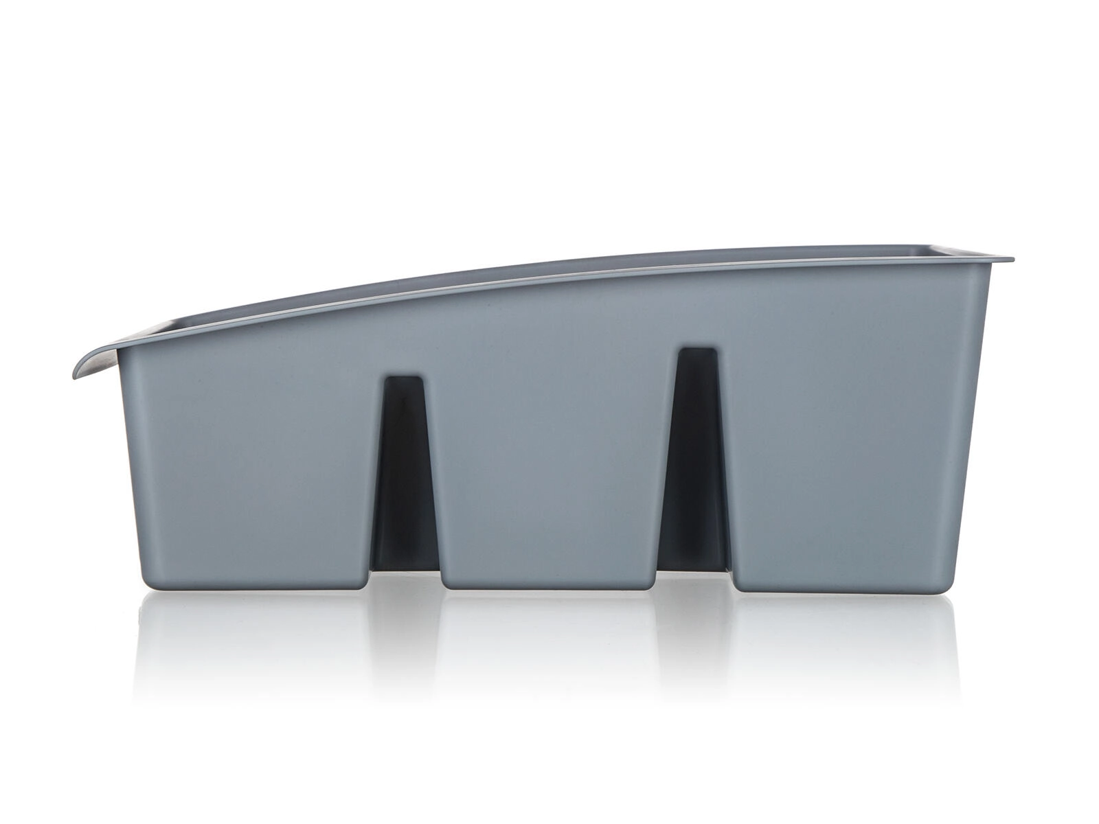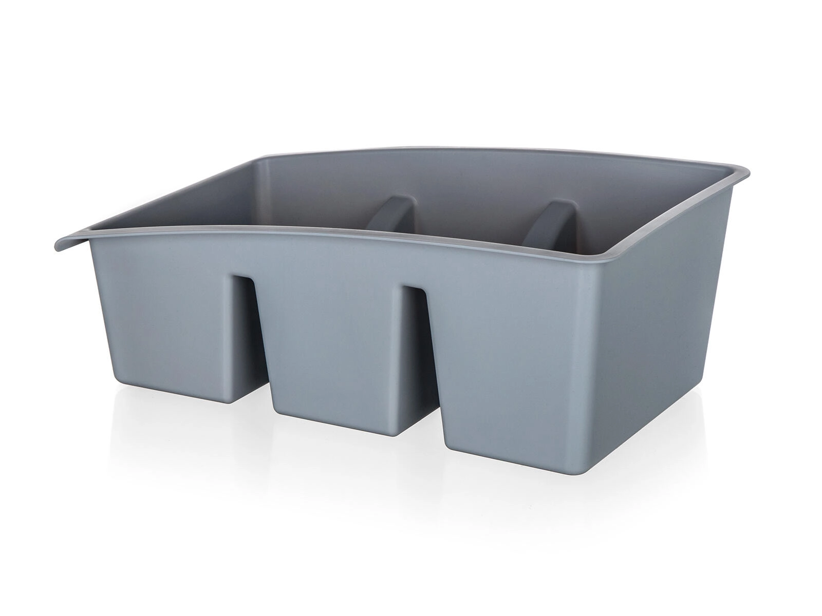 Ohranite red v svoji kuhinji s praktičnim organizatorjem za začimbe. Zahvaljujoč trem predelkom boste zlahka razvrstili vrečke in manjša pakiranja začimb, vse pa bo pregledno pri roki. Kompaktne mere 25 × 15 × 9 cm prihranijo prostor v predalu ali omarici, odporen plast v sivi barvi pa se preprosto čisti in deluje moderno in univerzalno.