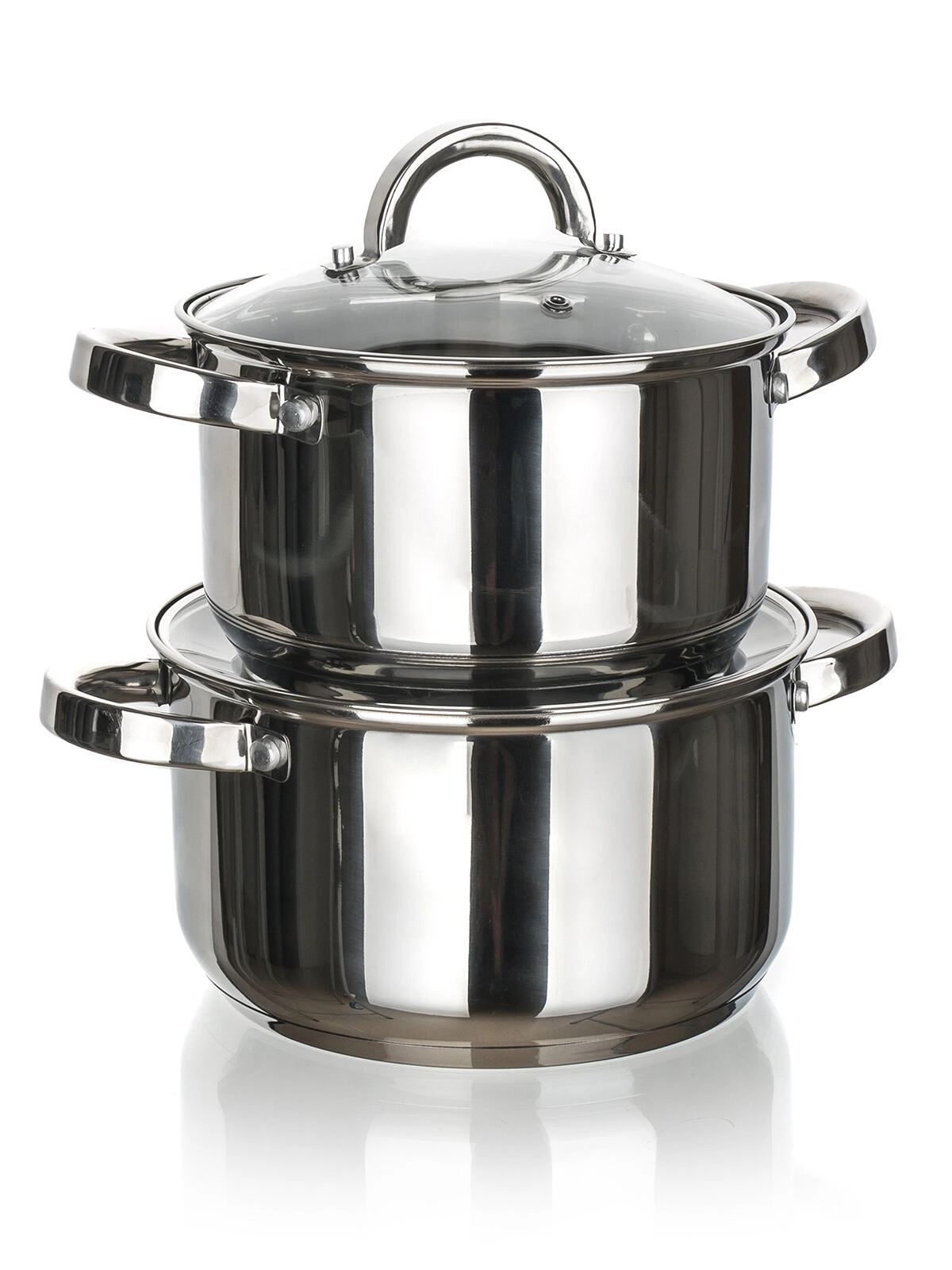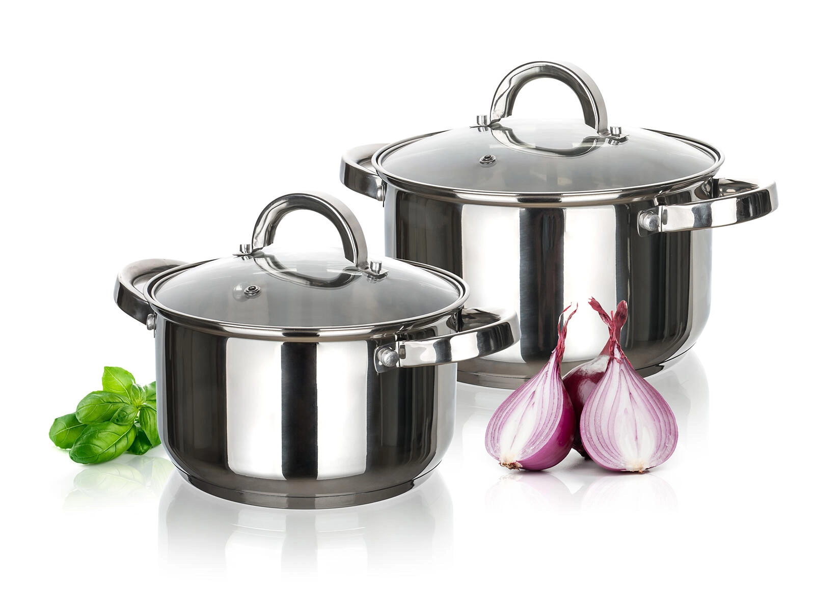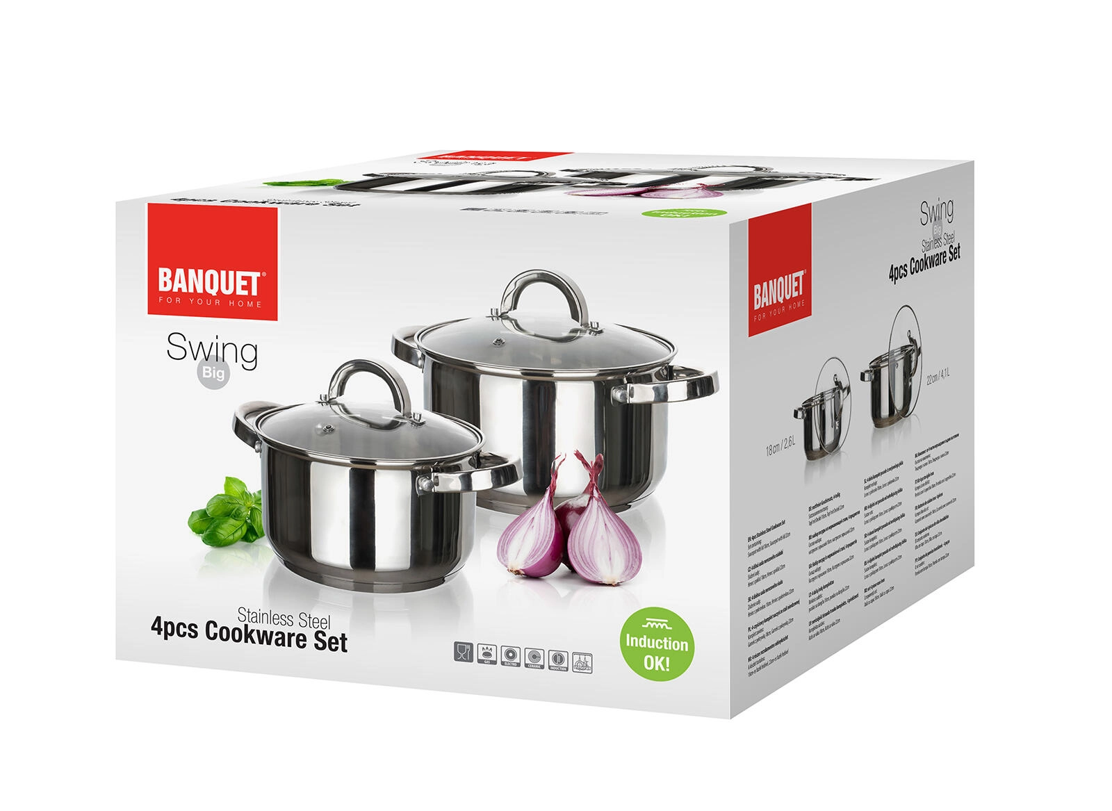 Univerzalni set nerjavečih loncev SWING za vsakodnevno kuhanje vsebuje dva lonca prostornine 2,6 l in 4,1 l, vključno s steklenimi pokrovkami z odprtino za paro. Primeren za vse vrste štedilnikov, vključno z indukcijo, z poliranim nerjavečim površjem znotraj in zunaj ter možnostjo pomivanja v pomivalnem stroju za preprosto vzdrževanje.