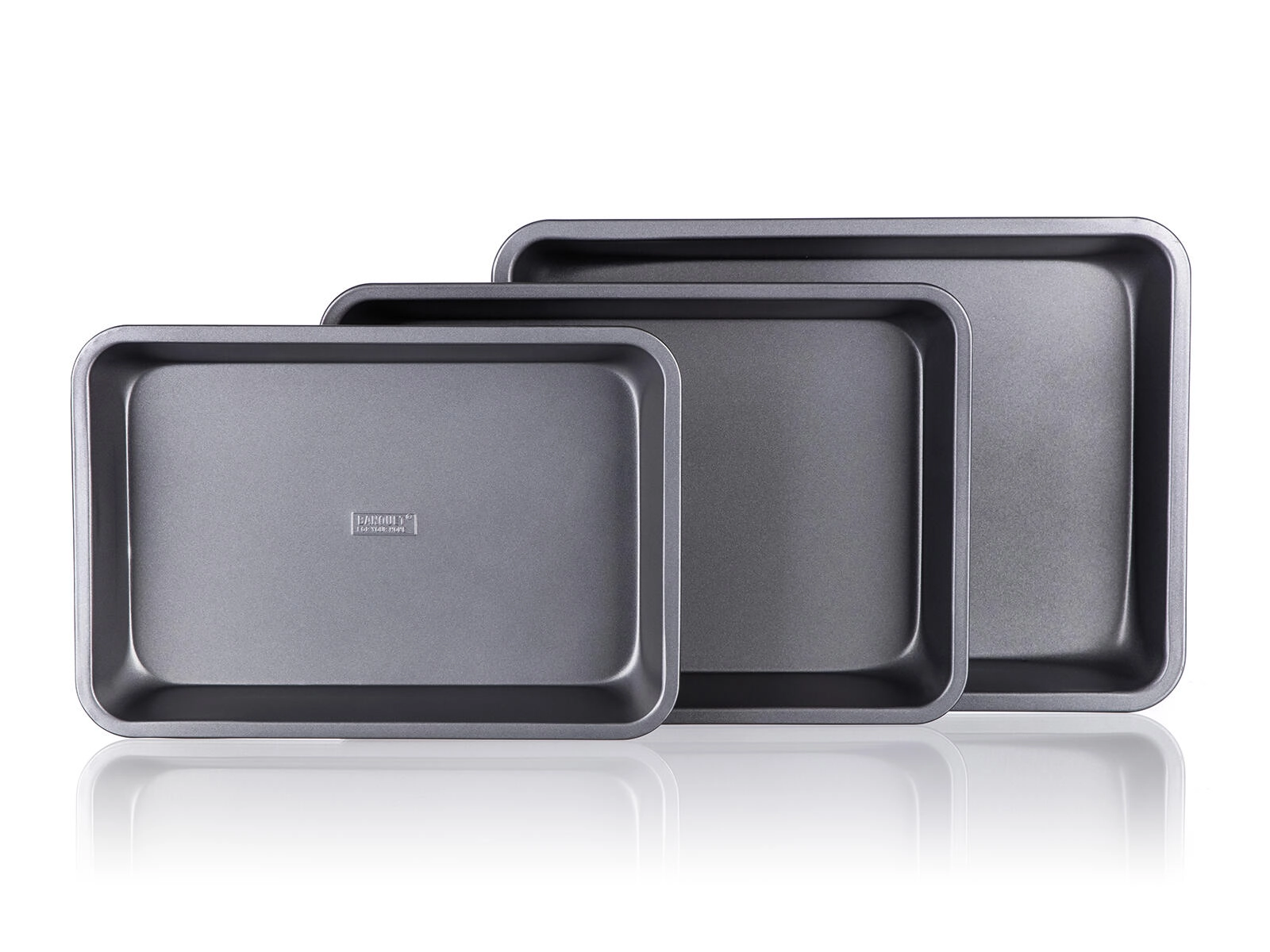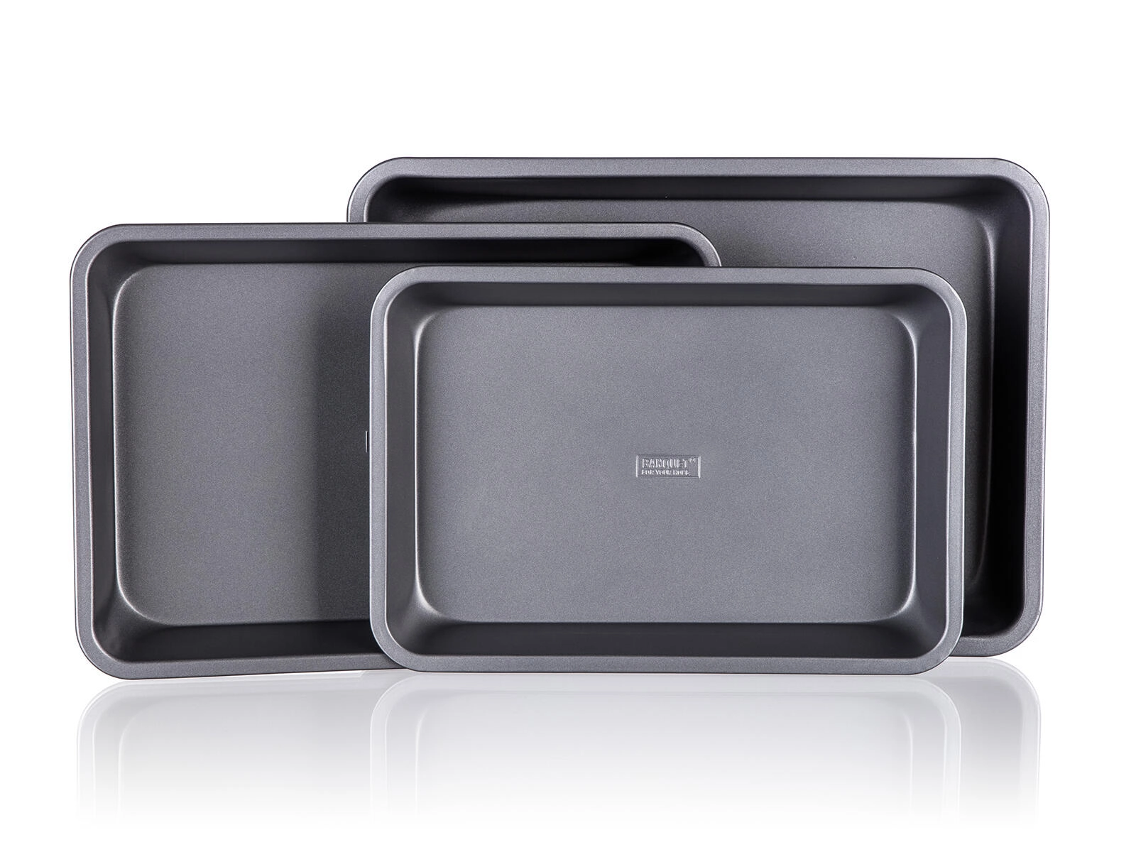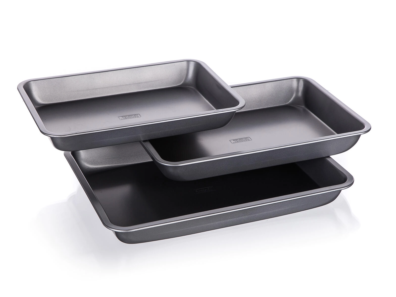 Pekači iz čvrste kovine z debelino 0,5 mm in povišanimi robovi zdržijo vsakodnevno uporabo. Po peki jih preprosto operete in shranite zlaganjem enega v drugega.