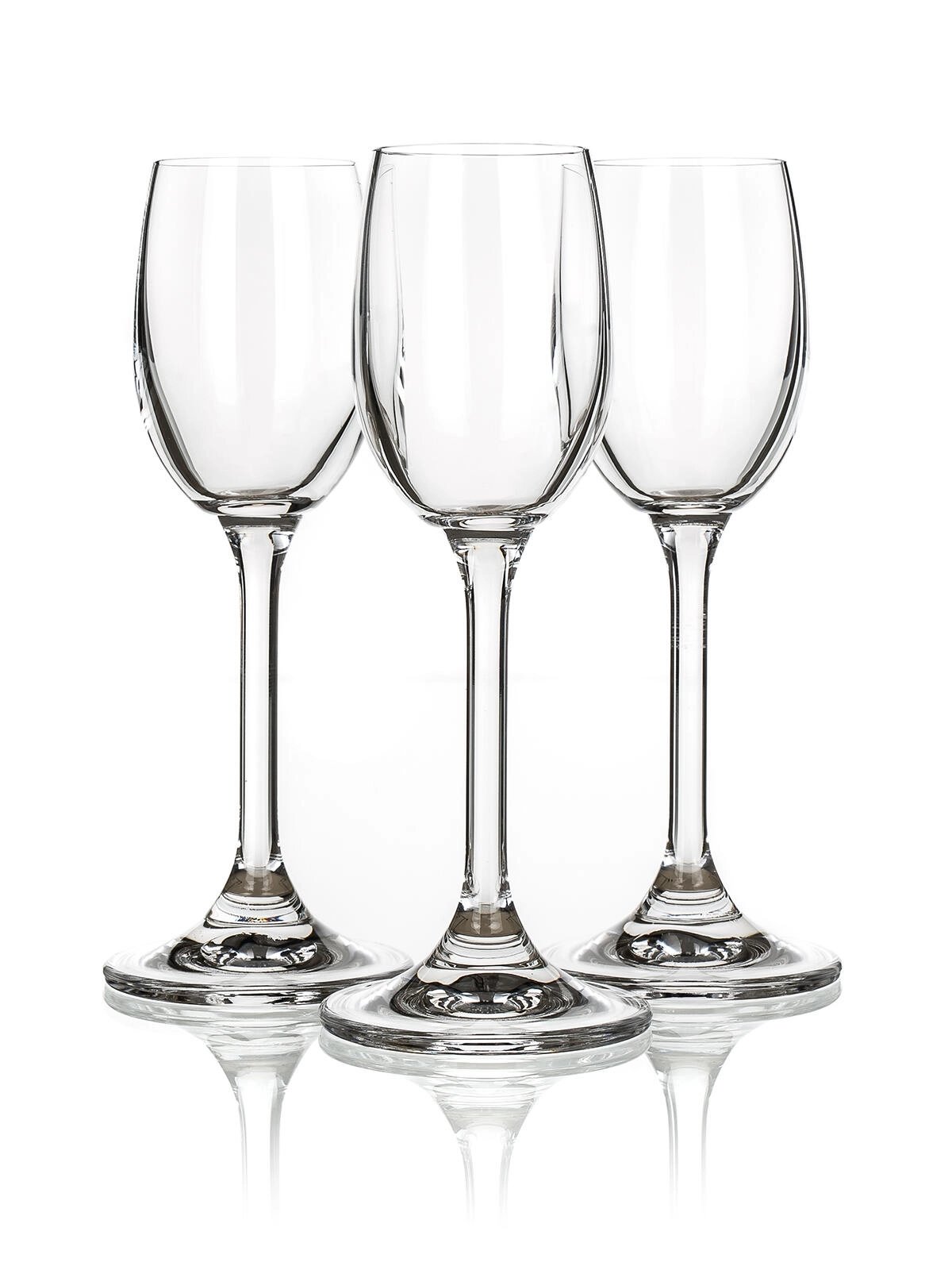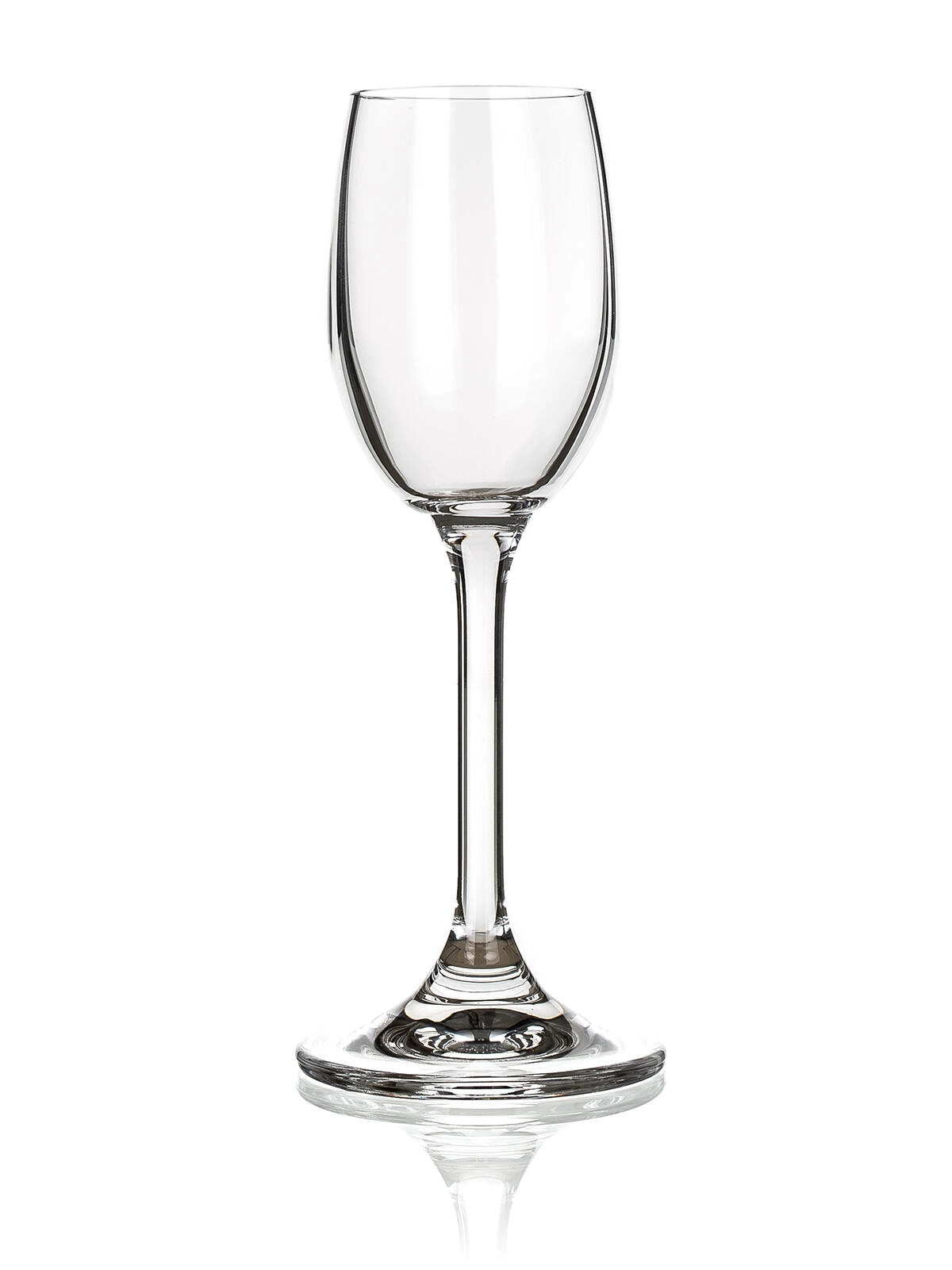 Zaradi vitkega peclja in stabilnega dna se kozarci udobno držijo in delujejo uravnoteženo na vsaki mizi. Sodobna oblika je idealna za likerje, žgane pijače in digestive. Enostavno vzdrževanje je samoumevno – kozarce lahko pomivate v pomivalnem stroju.