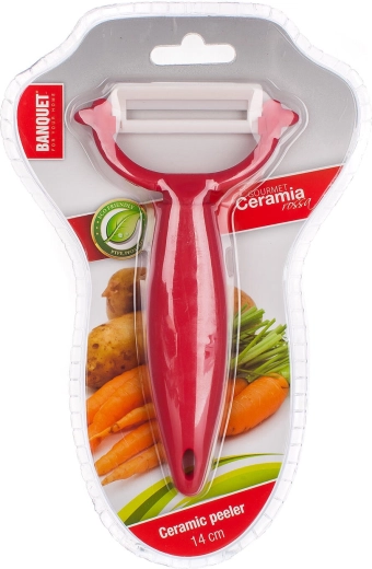 Keramični Y‑lupilec je odličen pomočnik v vsaki kuhinji. Belo keramično rezilo iz cirkonijevega oksida (širina 4 cm, debelina 0,8 mm) ohranja izjemno ostrino in je pri lupljenju nežno do živil, zato ohranja vitamine in encime. Zaradi lahke zasnove in udobnega plastičnega ročaja je delo z njim preprosto in natančno.