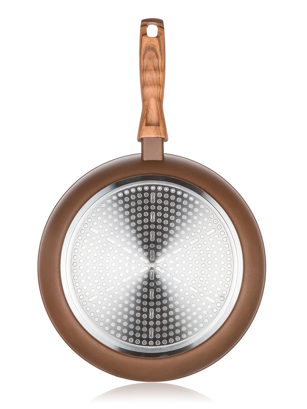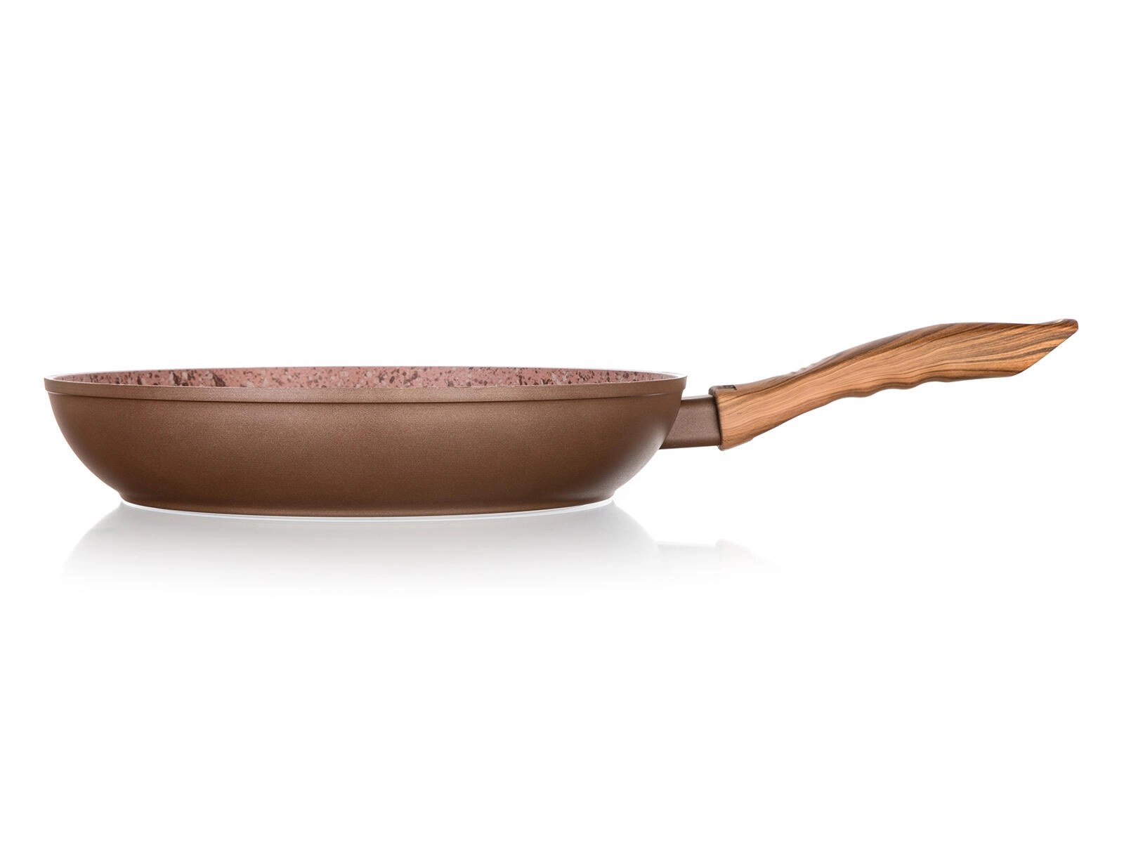 Zaradi premera 28 cm in višine 5,3 cm je idealna za vsakodnevno cvrtje, praženje in hitre jedi. Nelepljiva površina zmanjšuje prijemanje, zato zadostuje manj olja, ergonomski bakelitni ročaj s soft touch površino v imitaciji lesa pa zagotavlja varen in udoben oprijem.