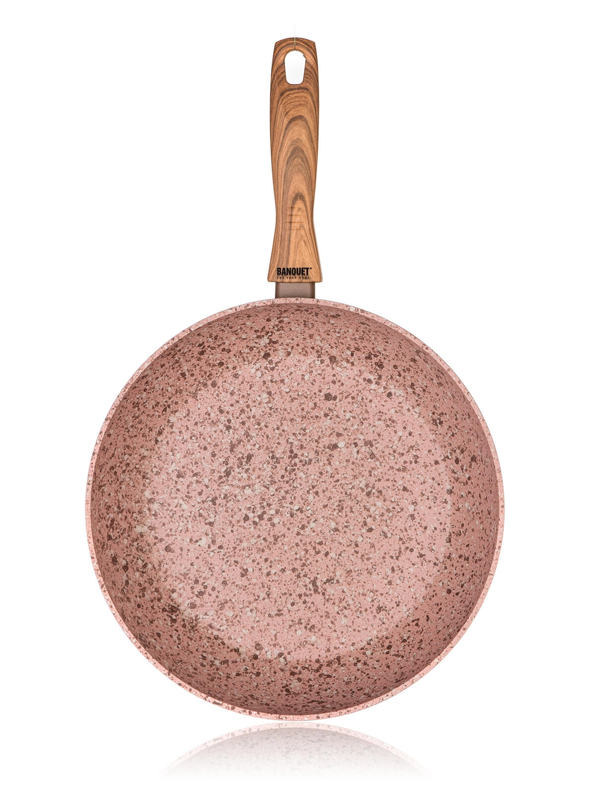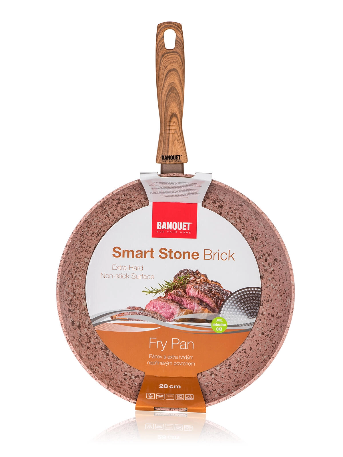 Ponev SMART STONE Brick združuje odporno kovano aluminijasto telo z dvoslojno površino v strukturi rečnega kamna za enostavno sproščanje jedi in preprosto čiščenje. Zunanja toplotno odporna prevleka in marmornat dekor dodajata eleganten videz, medtem ko polno indukcijsko dno poskrbi za učinkovit pregrev na vseh vrstah štedilnikov.