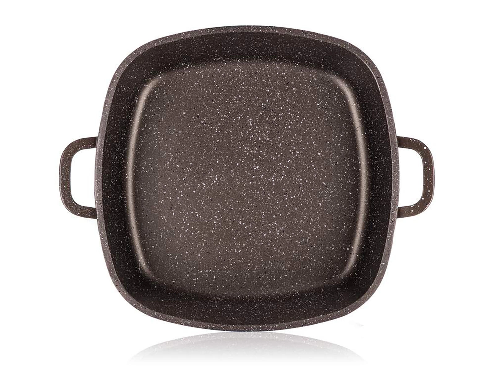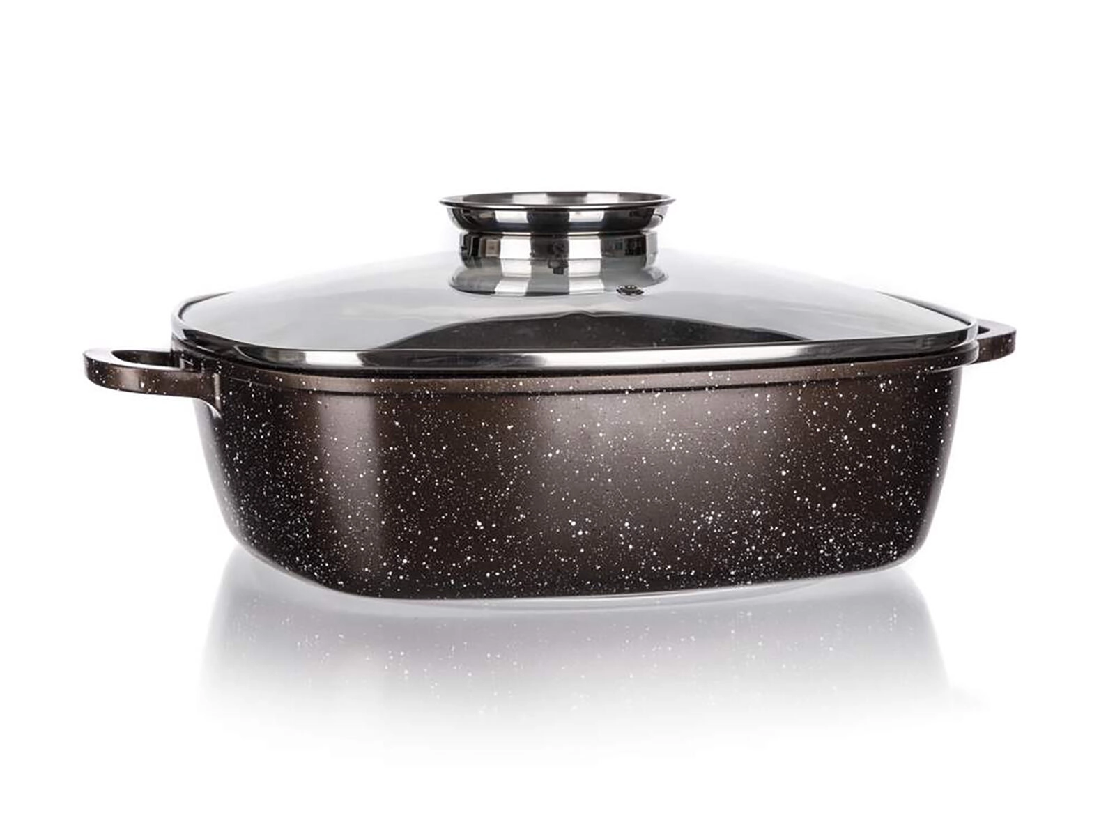 Kvadratni liti aluminijasti pekač s steklenim pokrovom in aroma gumbom za udobno pečenje in dušenje. Zahvaljujoč 2-slojni nelepljivi površini z marmornato strukturo, enakomerni porazdelitvi toplote in združljivosti z vsemi vrstami štedilnikov, vključno z indukcijo je idealen za vsakodnevno kuhanje. Toplotno odporen zunanji premaz, čvrste stene in debelo dno zagotavljajo vzdržljivost in dolgo življenjsko dobo.