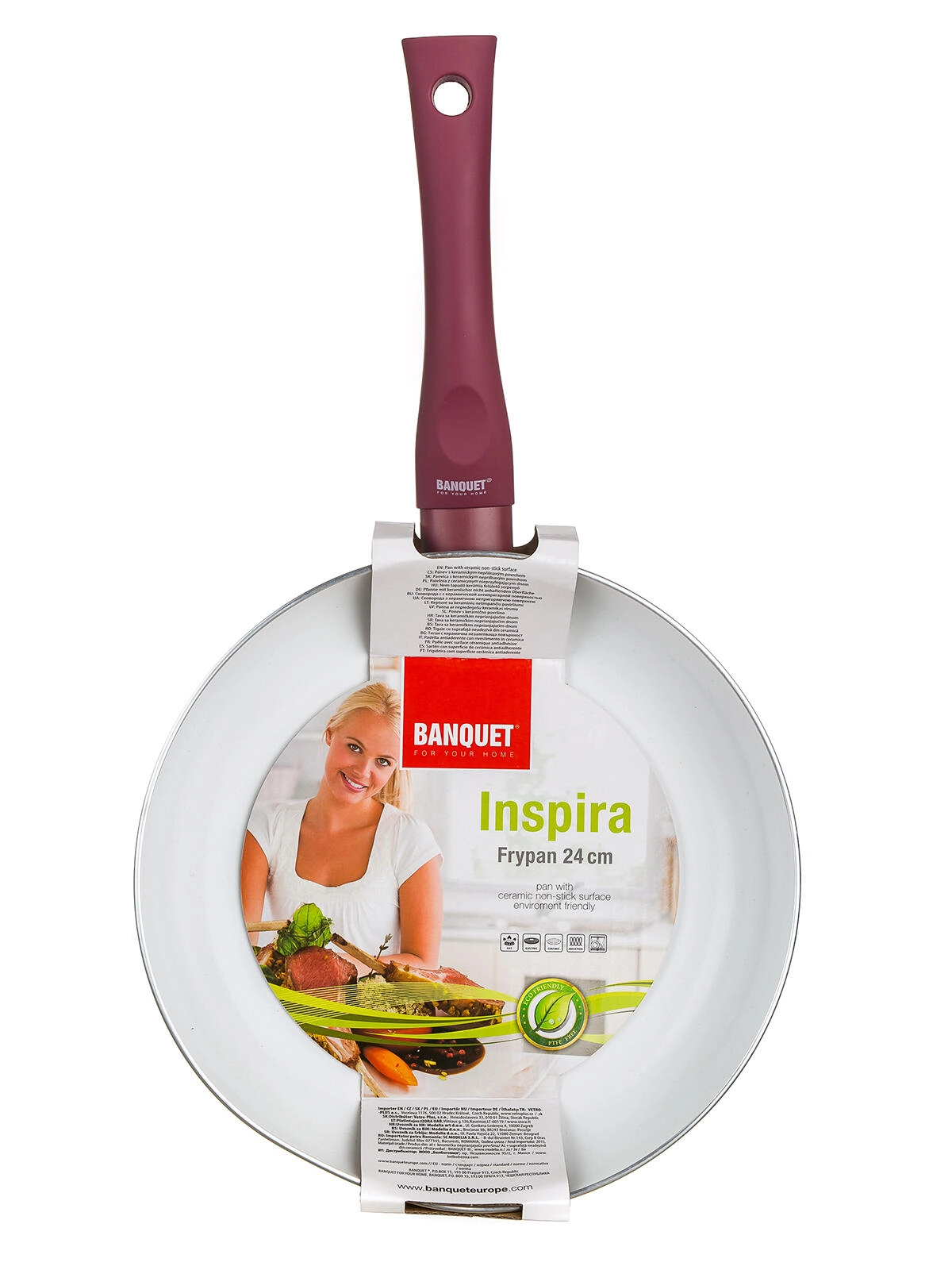 Odkrijte vsestransko ponev INSPIRA s premerom 24 cm z odporno keramično nelepljivo površino in udobnim soft-touch ročajem v elegantni vijolični barvi. Ponuja hiter in enakomeren segrevalni učinek, je preprosta za vzdrževanje in je primerna za elektriko, plin, steklokeramiko in indukcijo.