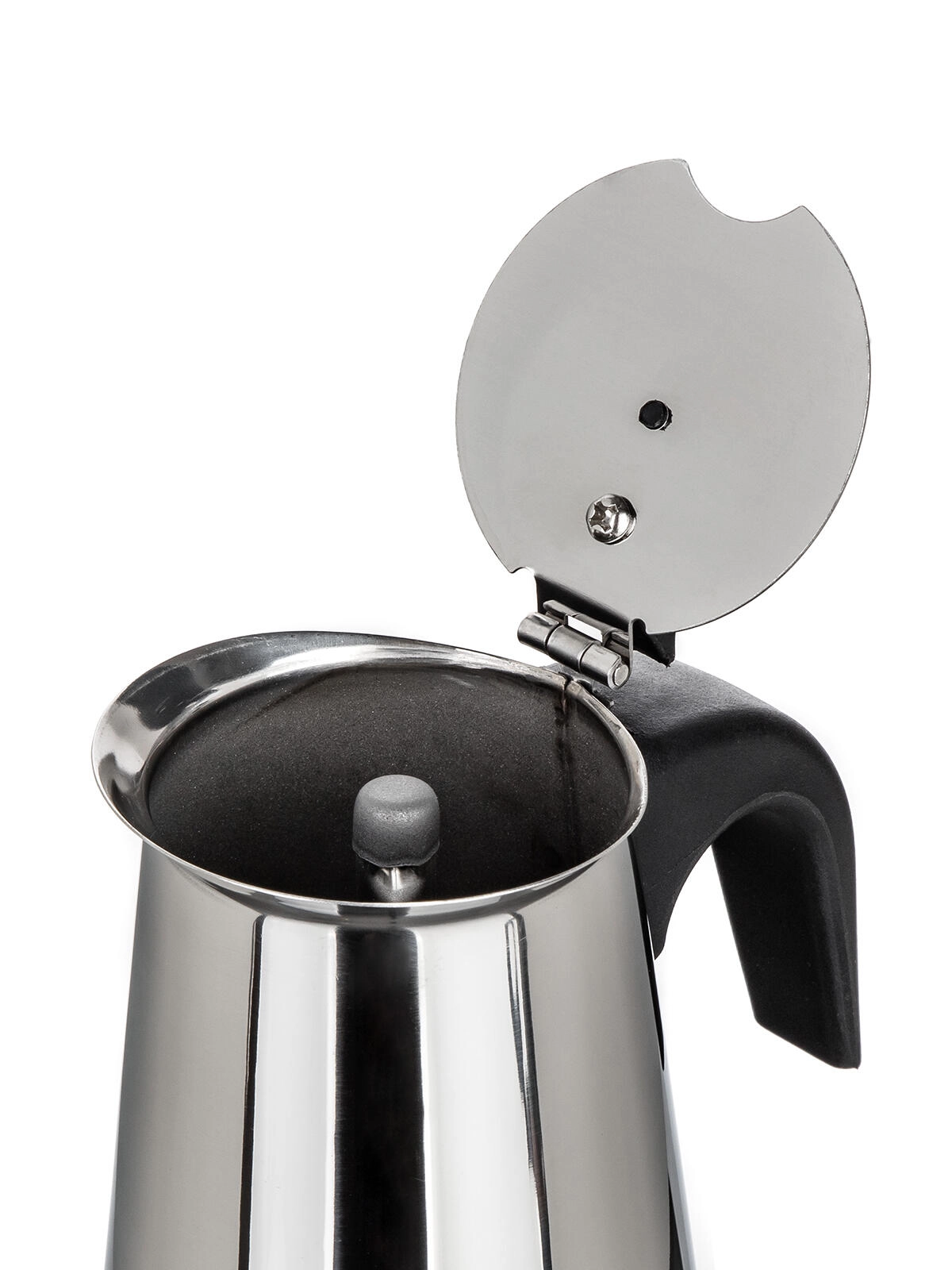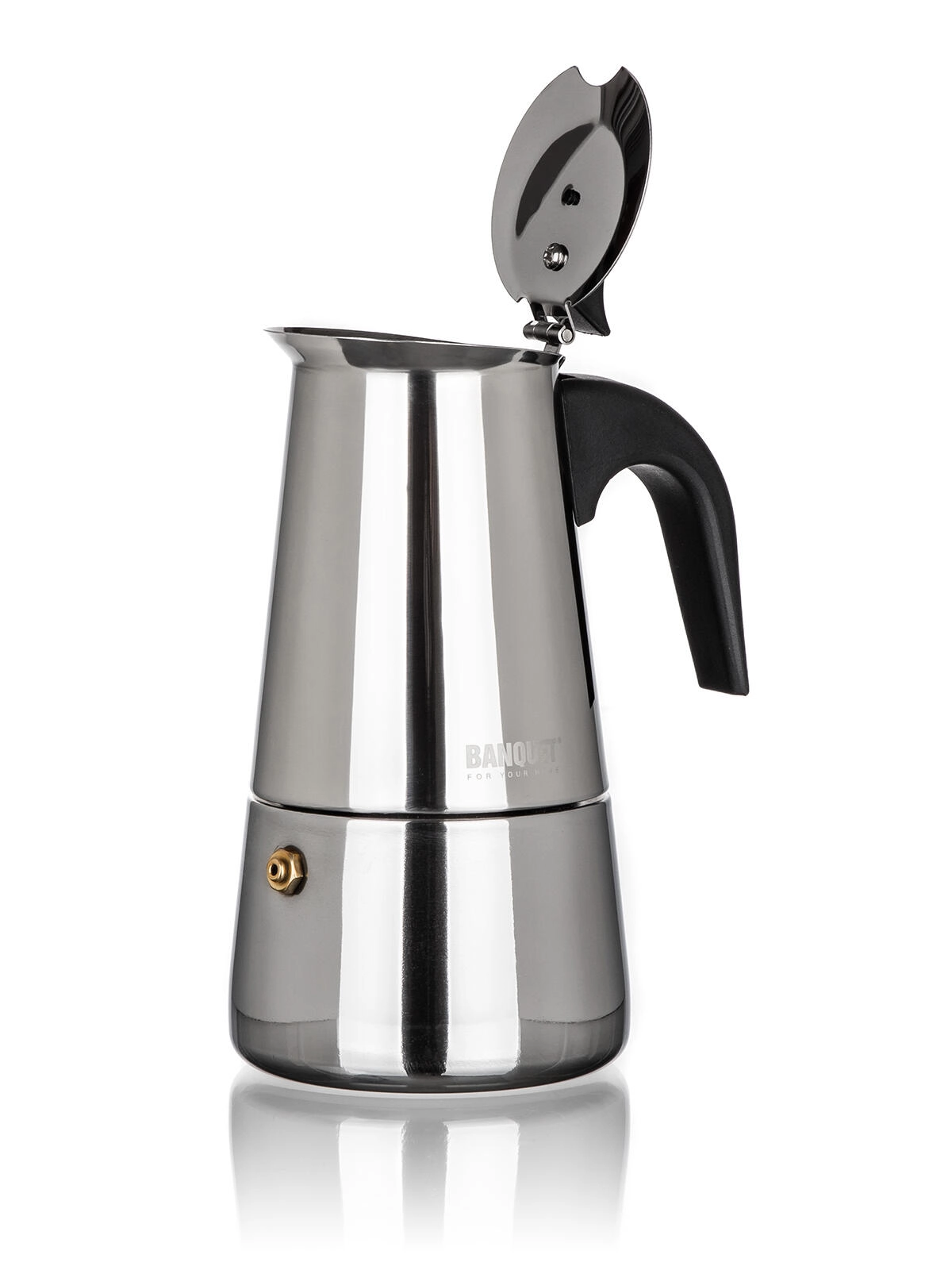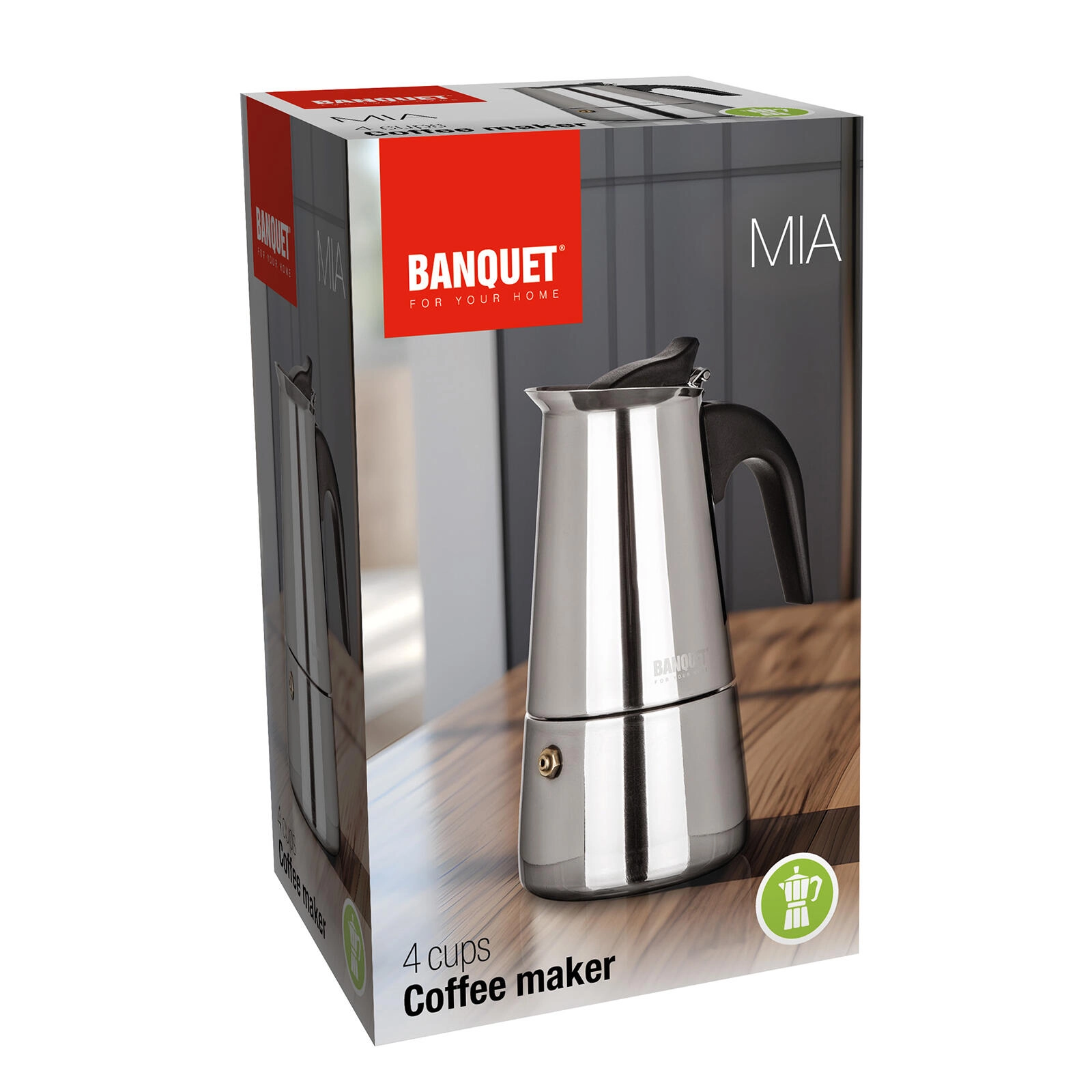 Uživajte v domačem espressu s tradicionalnim nerjavno jeklenim moka kavnim aparatom MIA za 4 skodelice (200 ml). Zahvaljujoč varnostnemu ventilu, ergonomskemu ročaju in trpežnemu nerjavnemu jeklu pripravite močno in aromatično kavo na plinu, elektriki, steklokeramiki in indukciji.