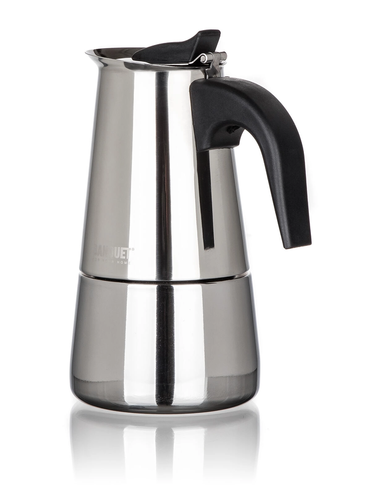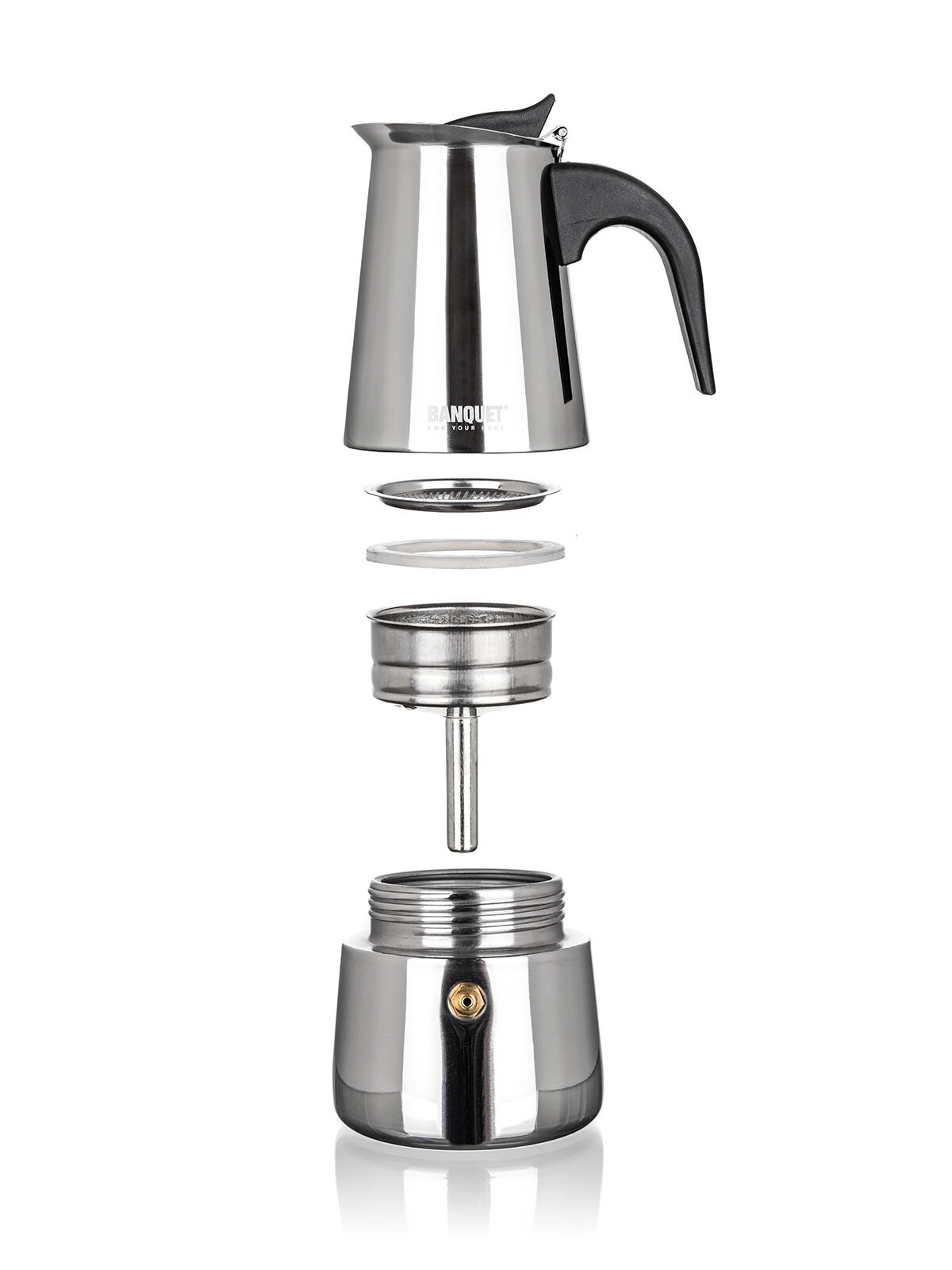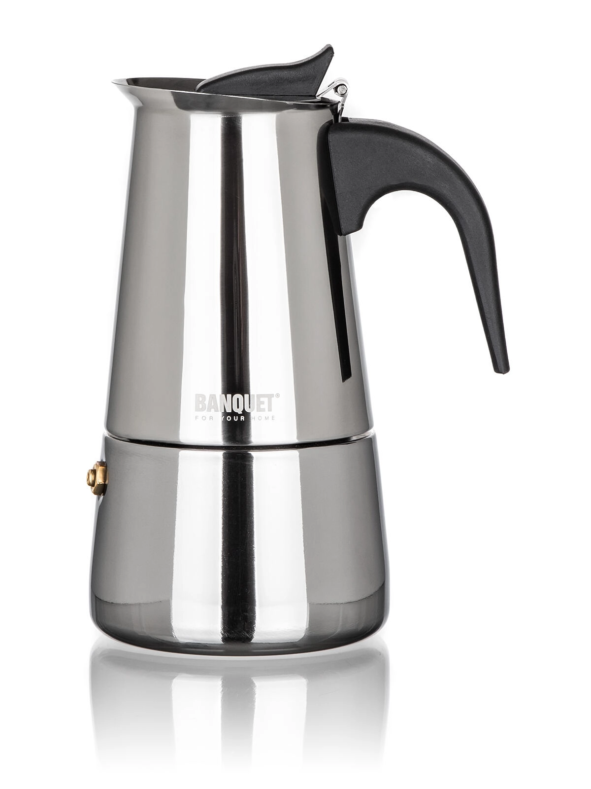 Uživajte v domačem espressu s tradicionalnim nerjavno jeklenim moka kavnim aparatom MIA za 4 skodelice (200 ml). Zahvaljujoč varnostnemu ventilu, ergonomskemu ročaju in trpežnemu nerjavnemu jeklu pripravite močno in aromatično kavo na plinu, elektriki, steklokeramiki in indukciji.