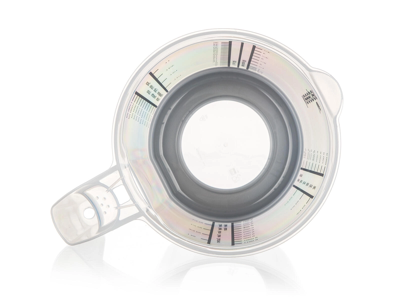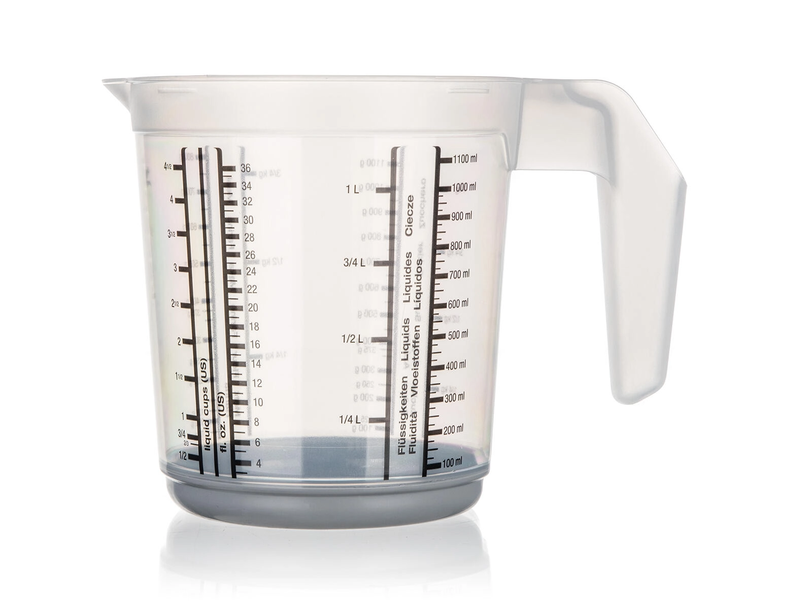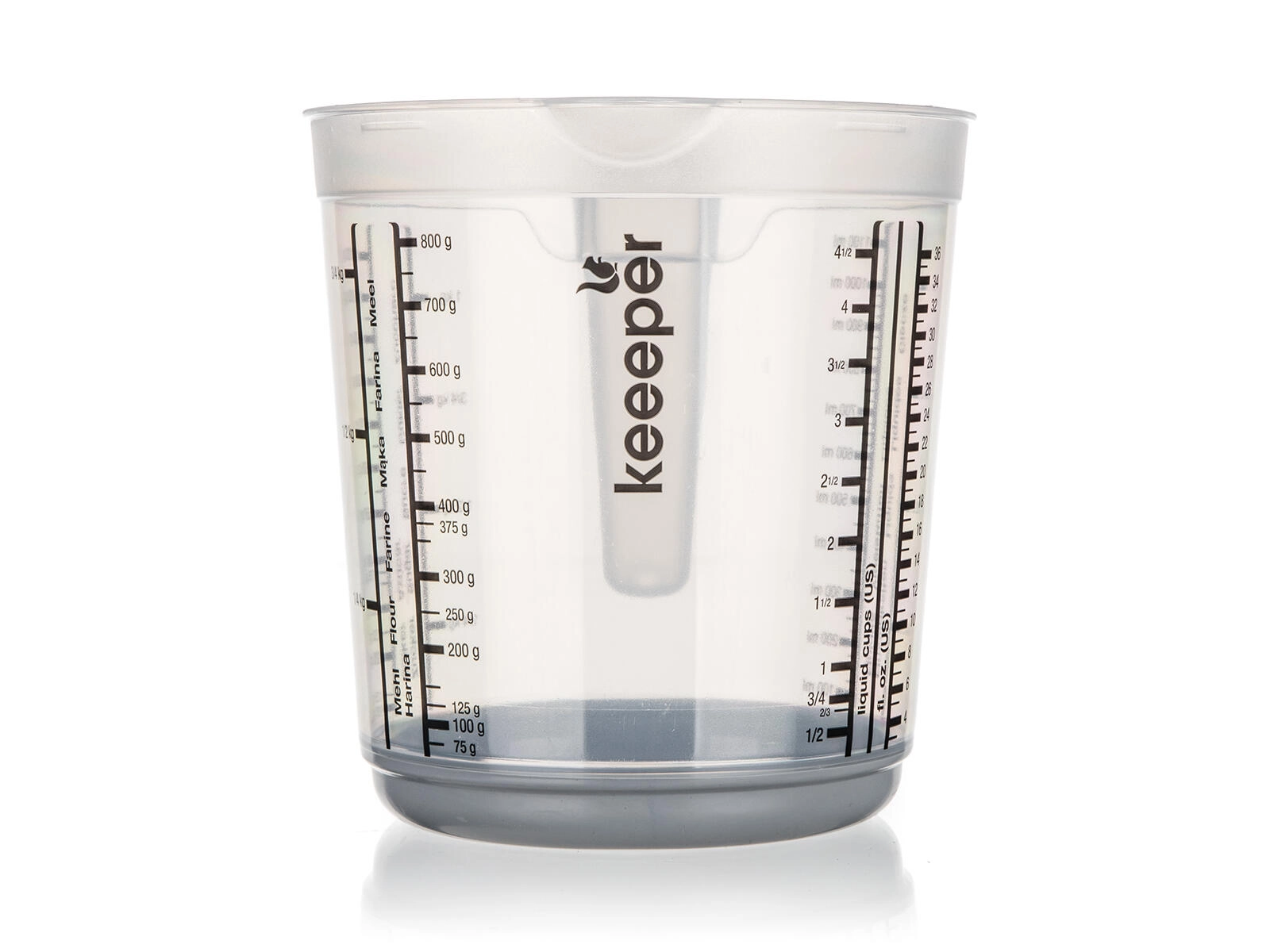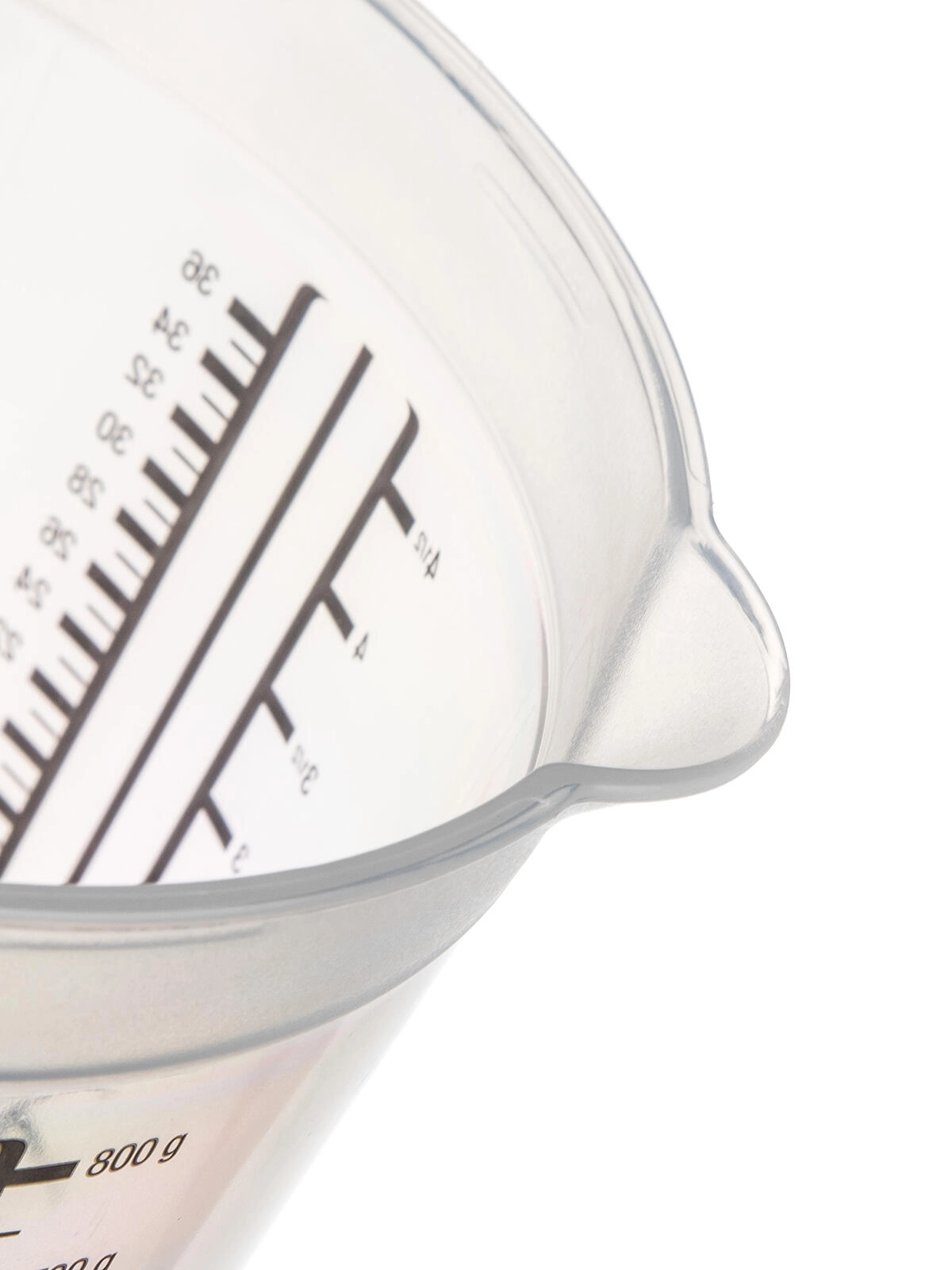 Lestvice v različnih merskih enotah zagotavljajo natančnost brez dolgotrajnega preračunavanja. Visok rob in oblikovan izliven rob pomagata pri čistem in enakomernem nalivanju brez kapljanja.