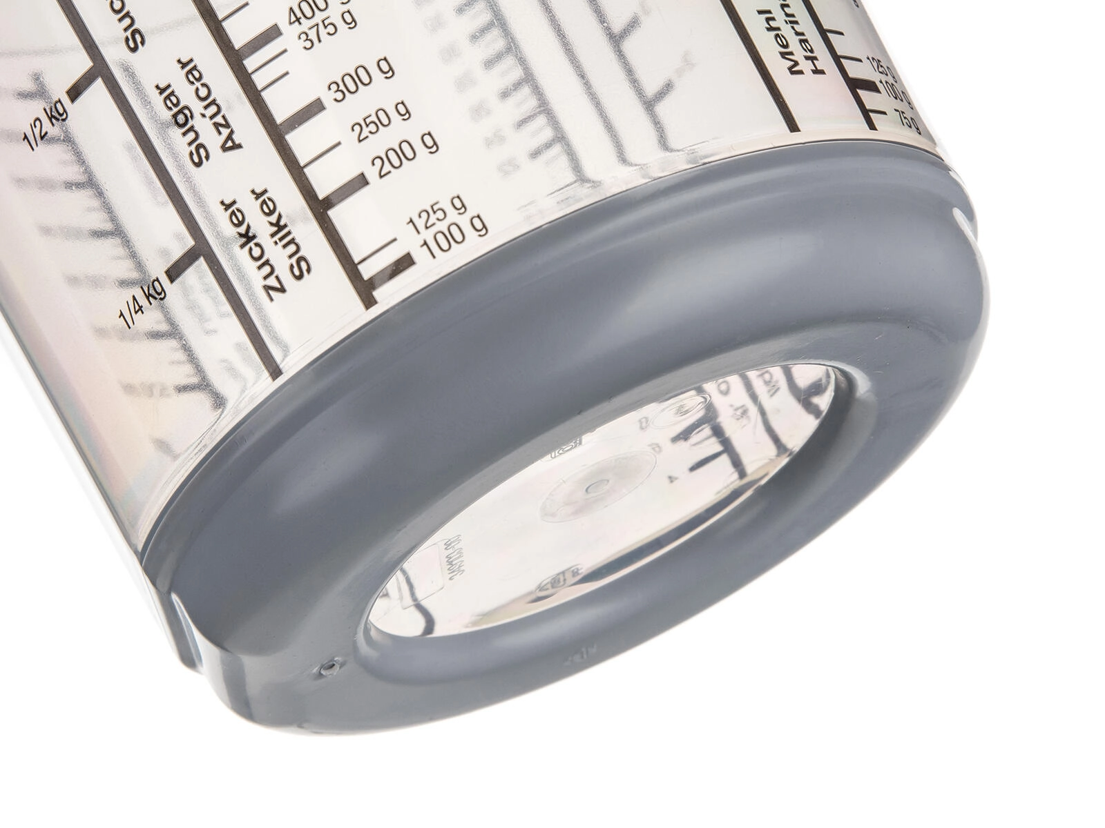 Črne, dobro berljive oznake za hitro in natančno odmerjanje tekočin in sipkih sestavin v več enotah.