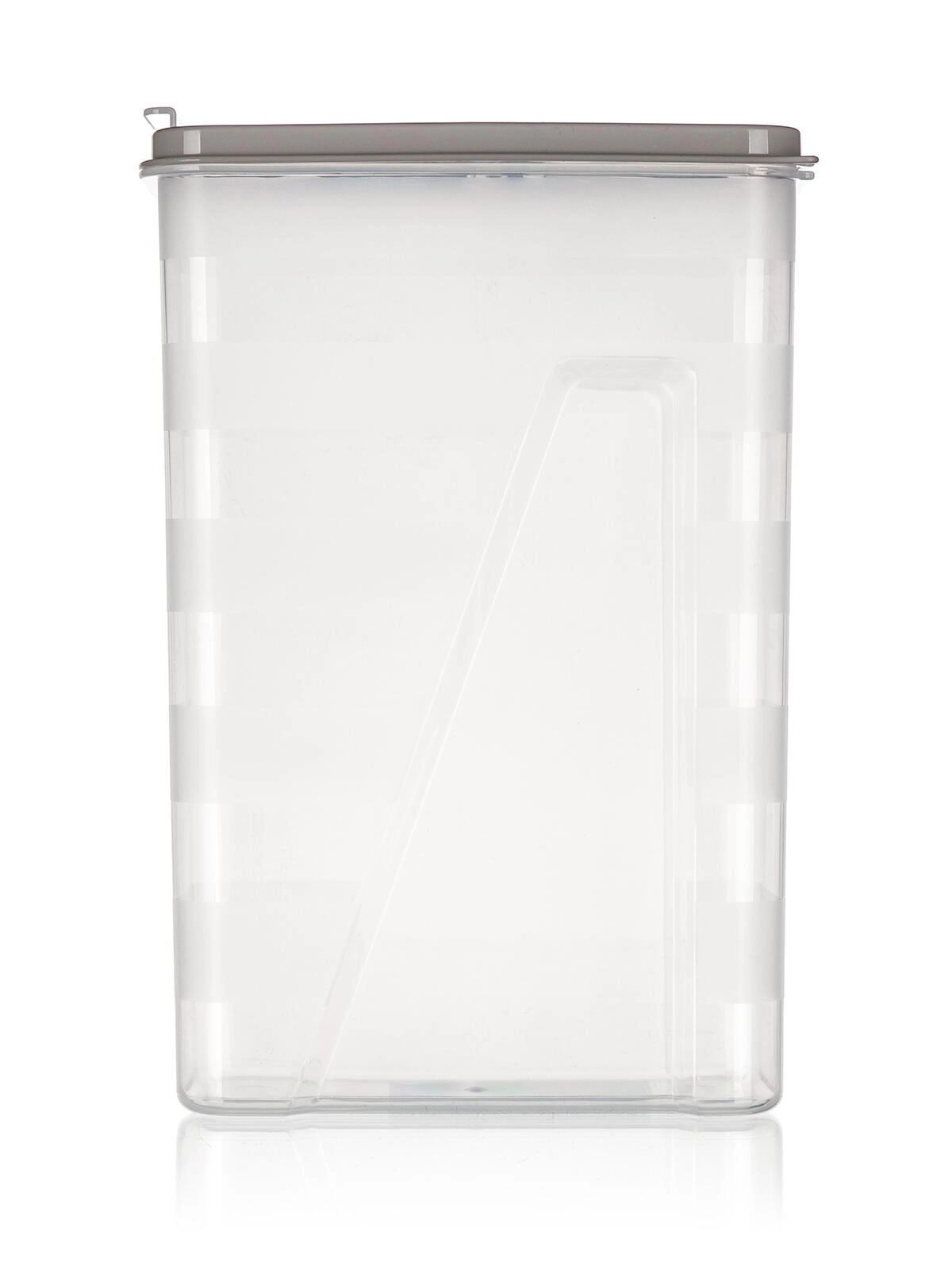 Uredite svojo shrambo z univerzalno plastično posodo za suhe živila. Prosojna izvedba zagotavlja takojšen pregled, medtem ko tesnilni pokrov z odpiralnim zapiranjem v barvi latte olajša vlivanje in posipanje brez nereda. Zaradi prostornine 2,5 l je odlična za vsakodnevno uporabo.