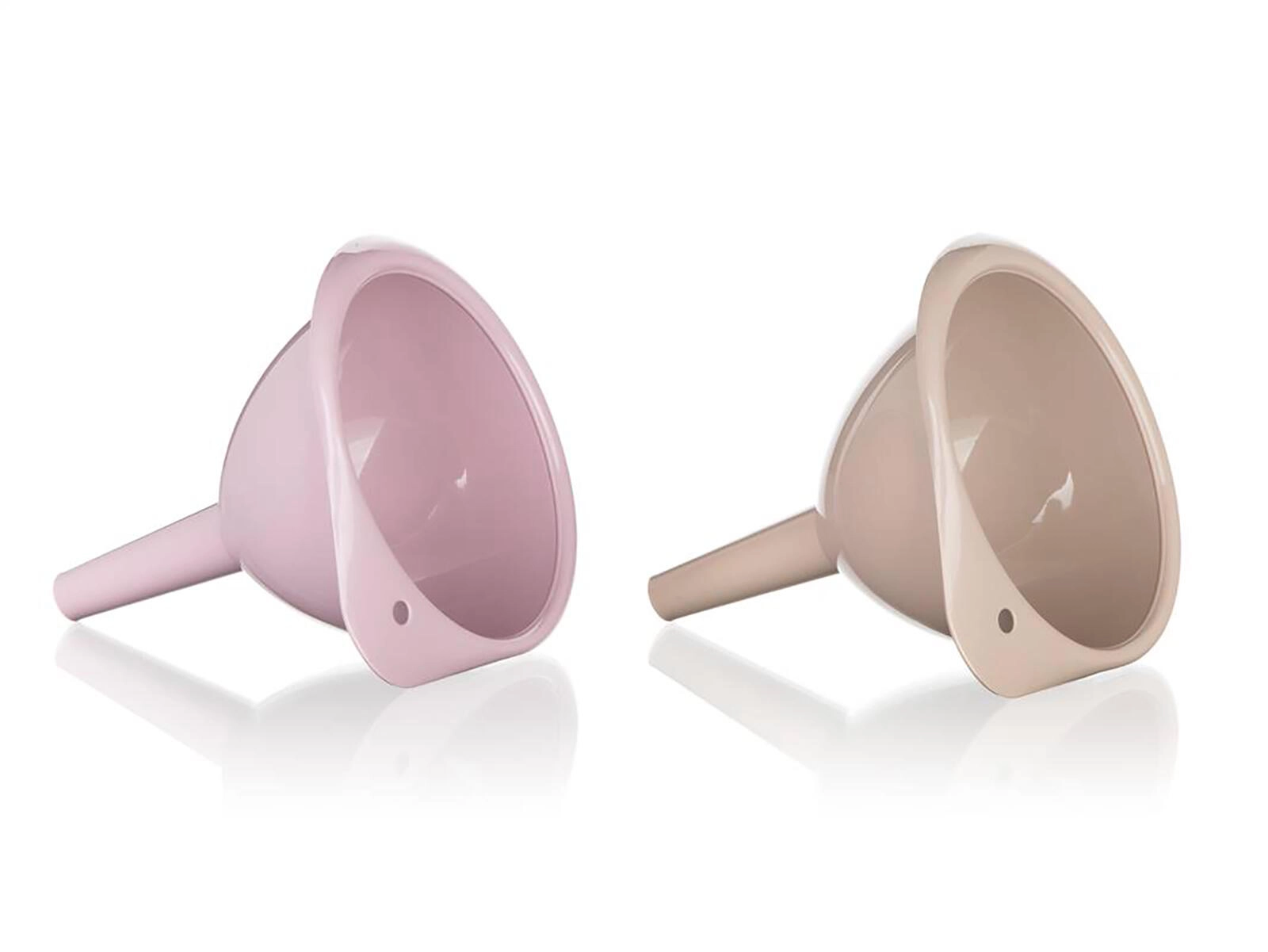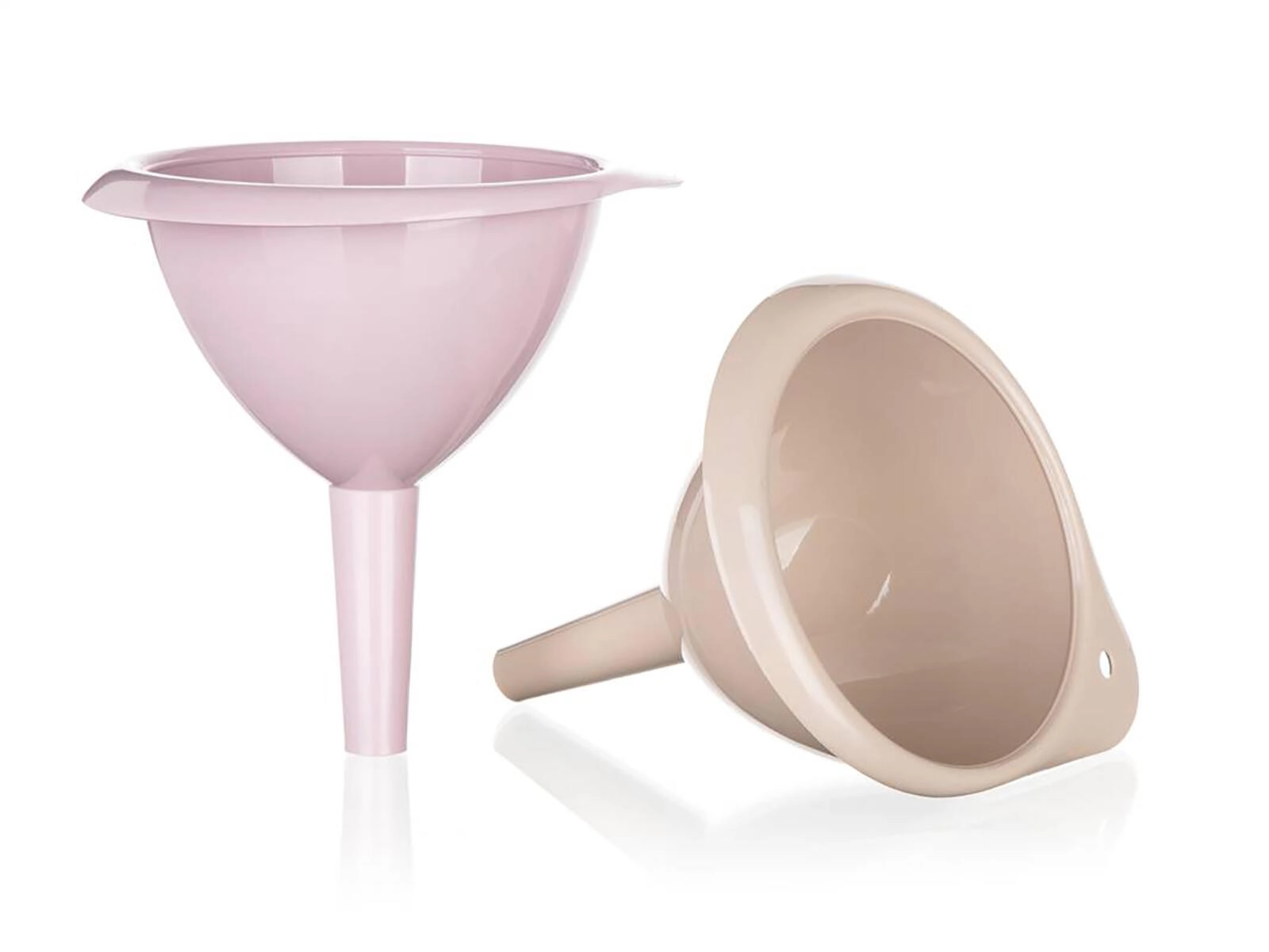 Gladek plast se hitro spere, obešalno uho pa omogoča, da je lijak vedno pri roki.