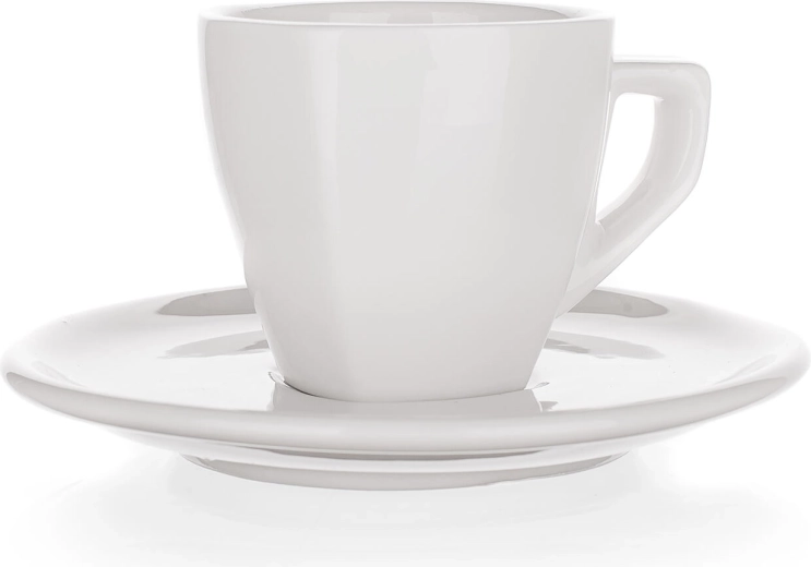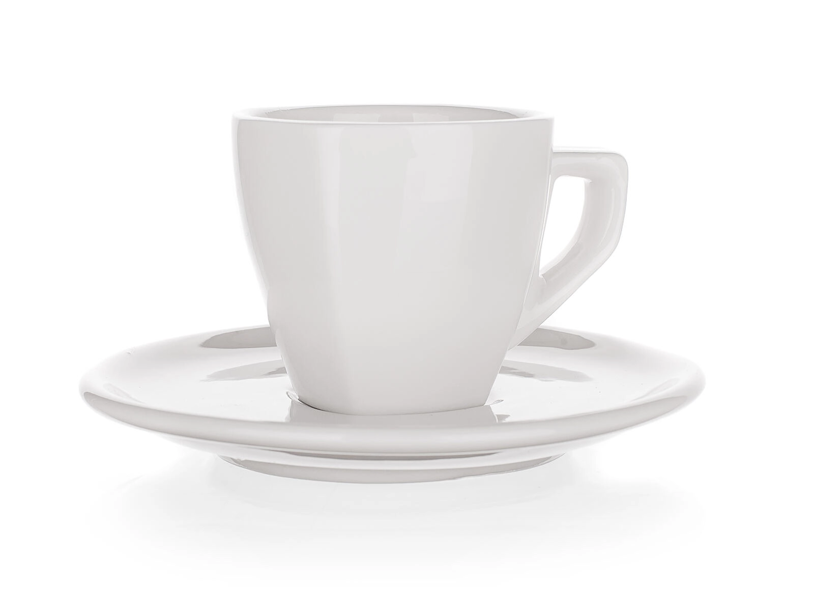 Uživajte v svojem najljubšem espressu z elegantno skodelico in krožničkom ALBA. Čisto bel porcelan z gladko glazuro ter sodobna kvadratna oblika delujeta profesionalno in brezčasno – odlično za dom in kavarne.