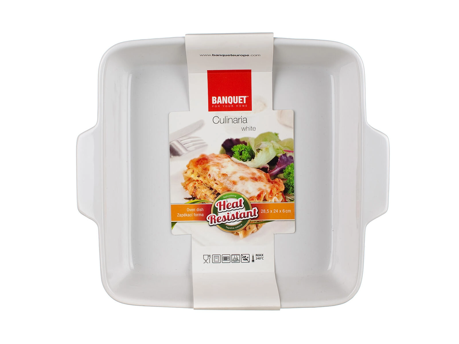 Pravokotni keramični pekač CULINARIA White z merami 28,5 × 24 × 6 cm je idealen za lazanje, gratinirane testenine, zelenjavo in sladke narastke. Kakovostna keramika odlično akumulira in postopoma sprošča toploto, zaradi česar se jedi enakomerno prepečejo in pri serviranju dlje ostanejo tople.