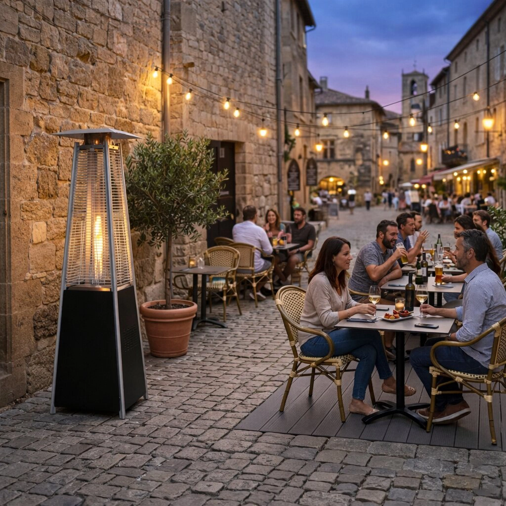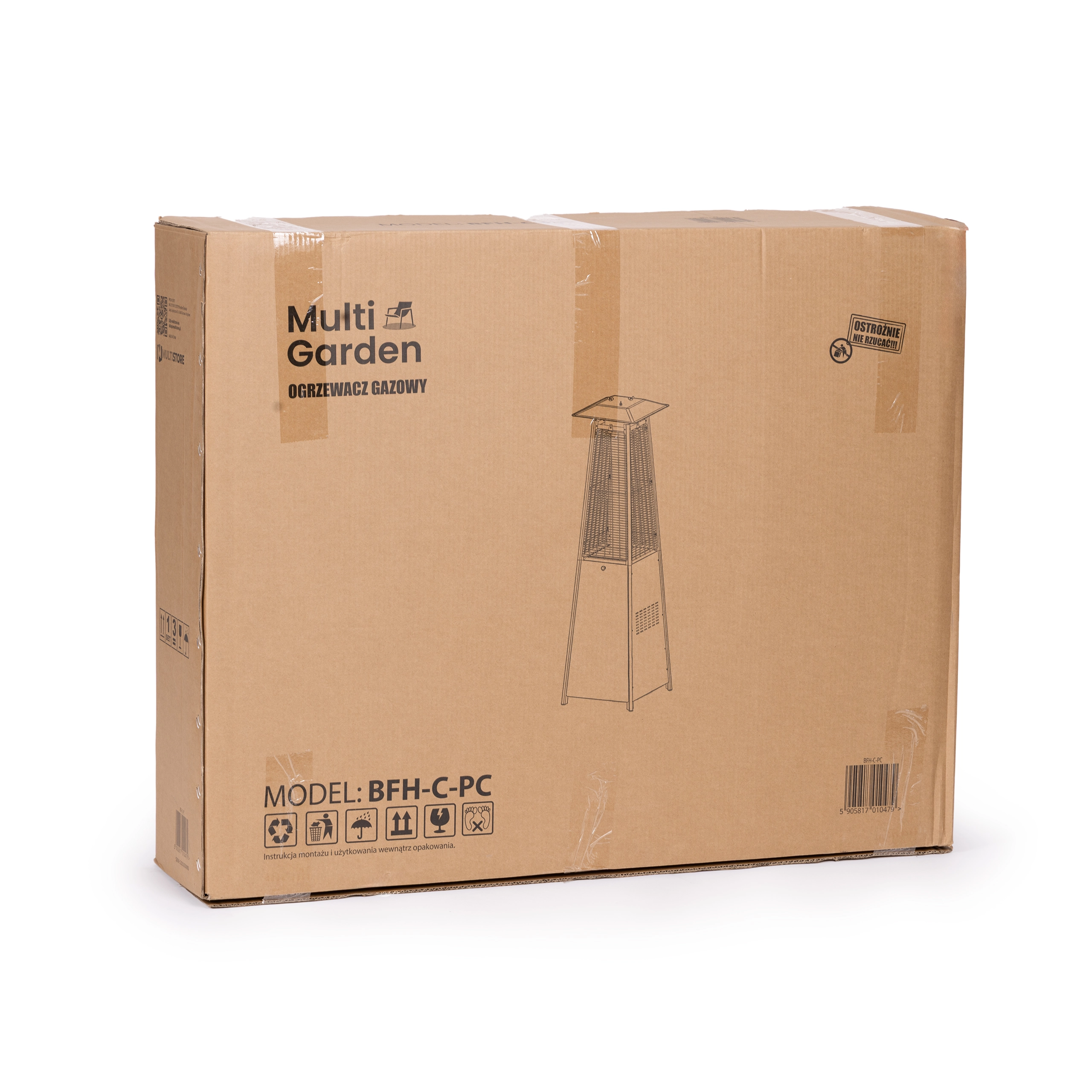 Plinski grelec MULTIGARDEN spremeni teraso, vrt ali zunanji kotiček v udobno cono za sprostitev. Visok viden plamen za odpornim steklenim ščitom ustvari prijetno atmosfero, širok razpon sevalne toplote pa zagotavlja enakomerno ogrevanje okolice. Sodobna zasnova se zlahka poda k gostinskemu vrtu, pergoli ali domači terasi.