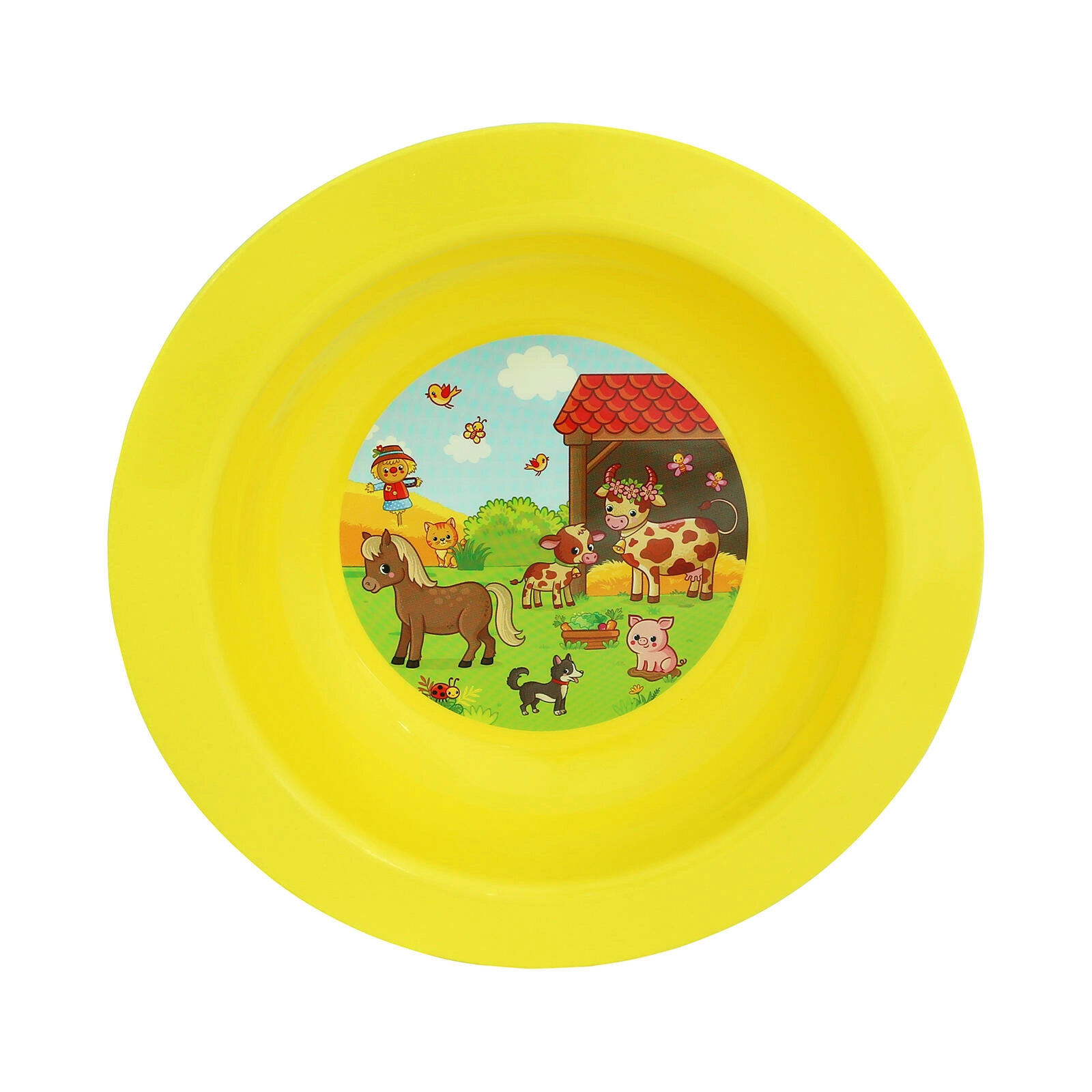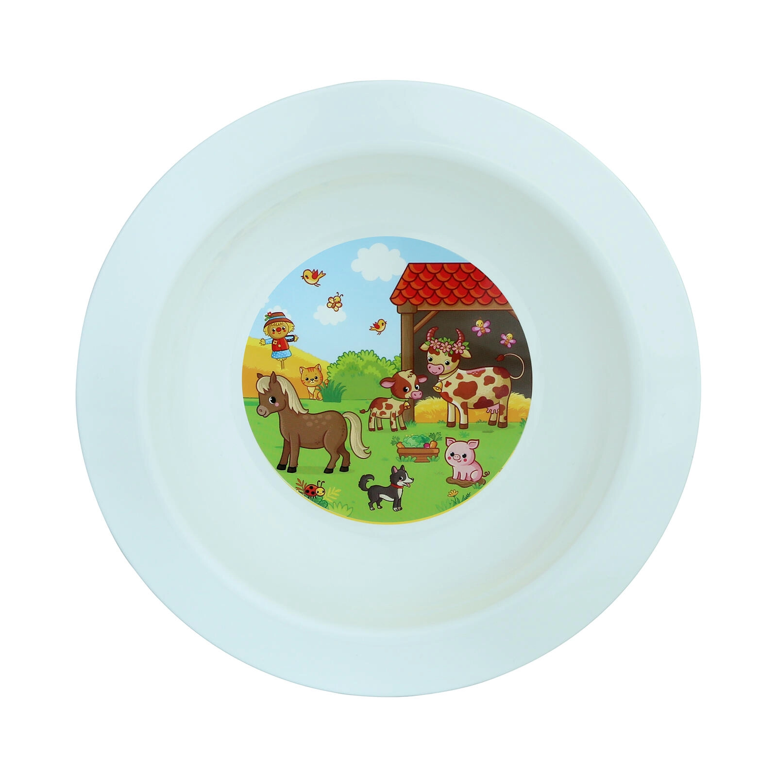Globok otroški krožnik z igrivim kmečkim potiskom spodbuja otroke k samostojnemu obedovanju. Zahvaljujoč lahkemu in čvrstemu plastiku se dobro drži v roki, je odporen na padce in idealen za vsakodnevno uporabo doma ali na poti.