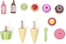 Snemljive kepice, korneti in lonček vabijo k mešanju »okusov« ter okraševanju z malinovim ali čokoladnim prelivom. Odlično za igro sladoledarne.