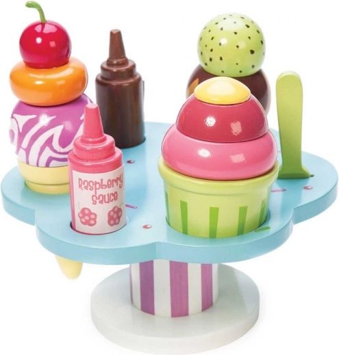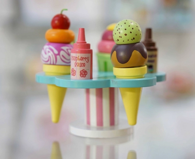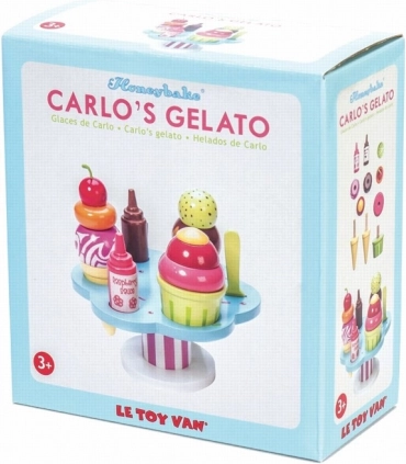 Igralni set Le Toy Van Carlo’s Gelato otrokom prinaša neskončno mero zabave in domišljije. Vsebuje kornete in lonček, snemljive kepice, dve omaki in posip, ne manjka niti žlička. Izdelan je iz trajnostnega lesa FSC, ročno dodelan z nestrupenimi barvami na vodni osnovi ter spodbuja fino motoriko, kognitivne veščine in igro vlog.