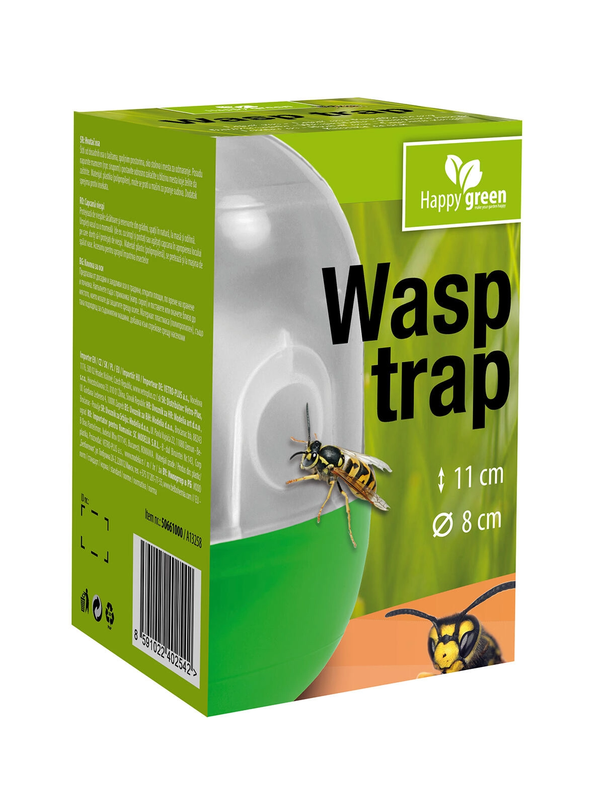 Past za ose je diskreten pomočnik za sproščene trenutke na vrtu, balkonu ali terasi. Zaradi kombinacije vode in sladke vabe se ose zlahka privabijo v notranjost, kjer ostanejo ujete. Prosojna izvedba omogoča nadzor nad napolnjenostjo, zelene komponente pa se ujemajo z zunanjim okoljem.