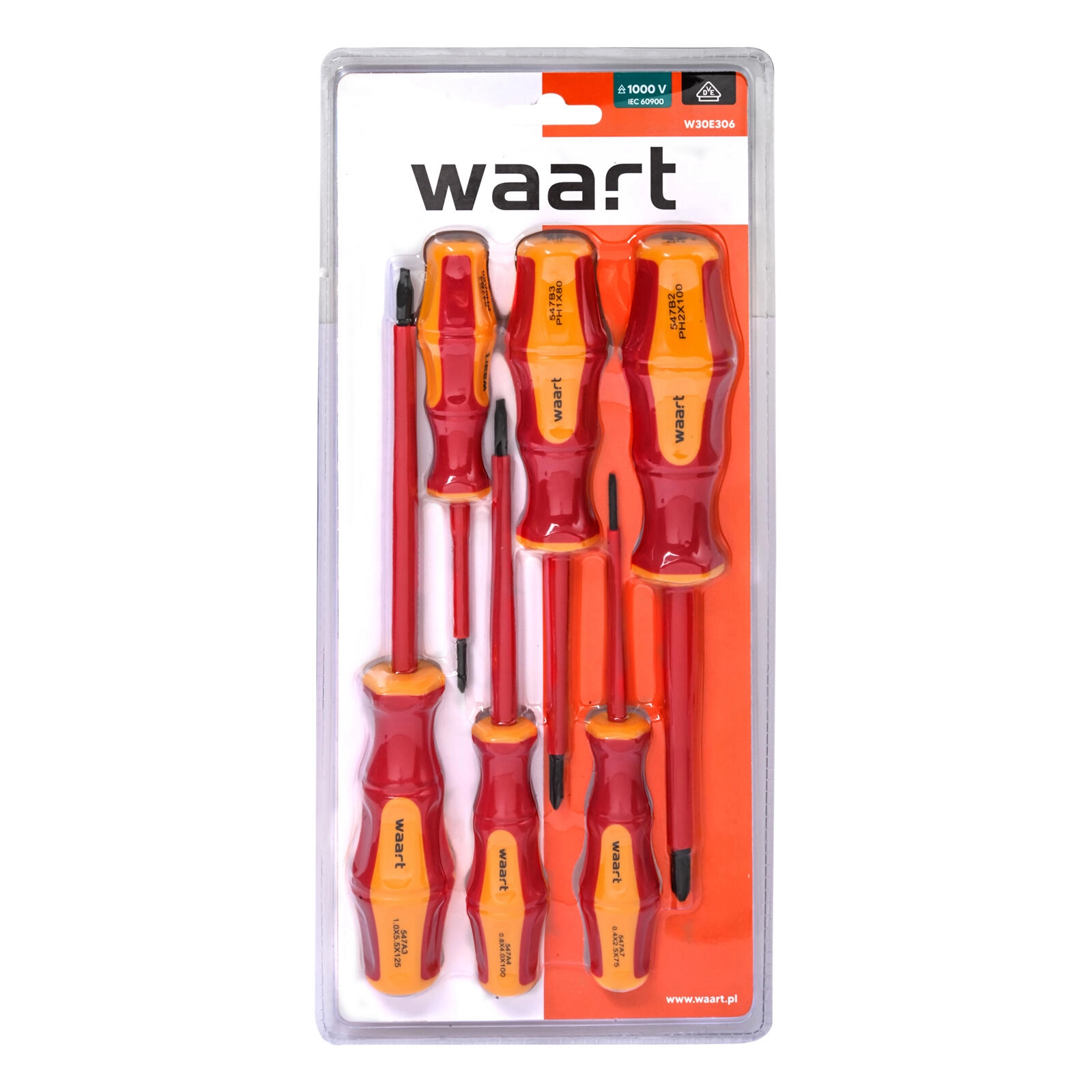 Profesionalni šestdelni set izoliranih izvijačev za električarje in mojstre z certifikatom VDE do 1000 V. Ponuja varno vijačenje na električnih inštalacijah, ergonomske ročaje za udobno delo ter trpežne rezalne robove iz krom-molibdenovega jekla za dolgo življenjsko dobo.