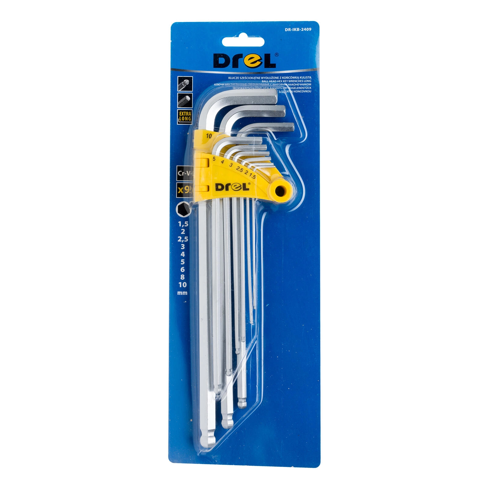 Set imbus ključev DREL je zanesljiva izbira za delavnico, servis in gospodinjstvo. Podaljšana izvedba in kroglast zaključek na daljšem koncu omogočata delo tudi na težko dostopnih mestih ter pod manjšim kotom. Kakovosten material iz krom-vanadijevega jekla zagotavlja visoko odpornost proti obrabi in torzijski obremenitvi.