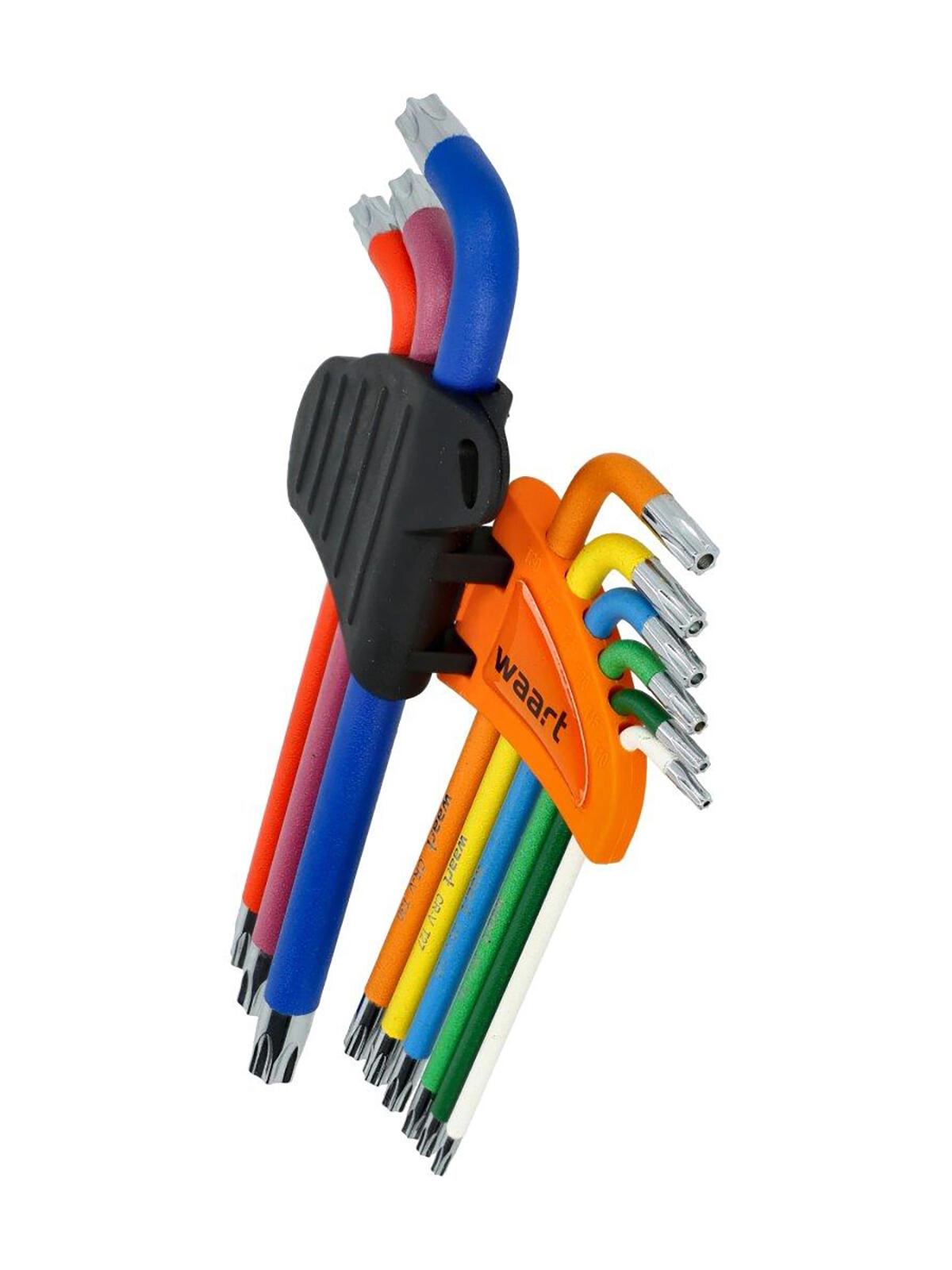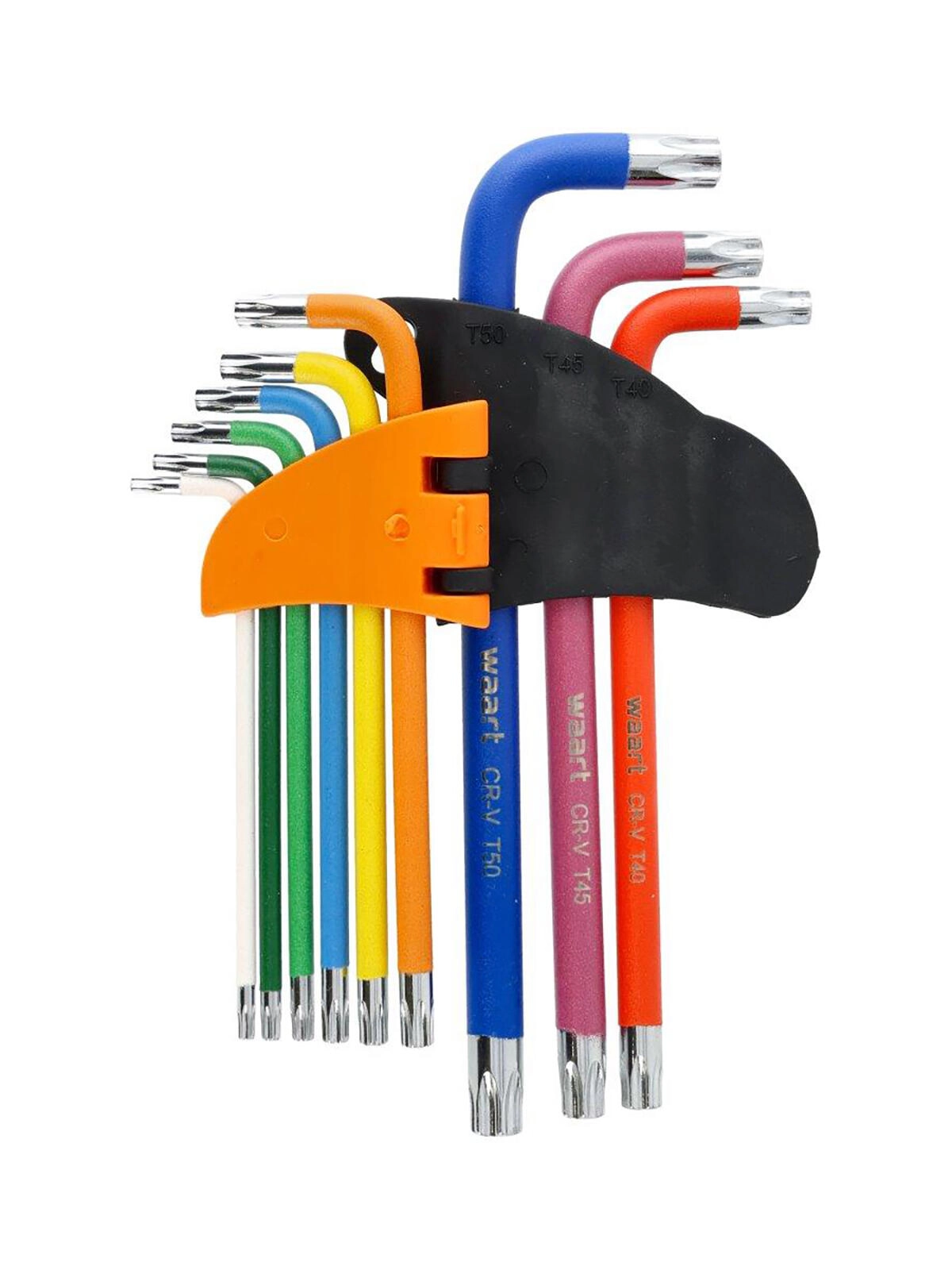 Vsak ključ je barvno kodiran za hipno prepoznavanje velikosti, kar pospeši delo in zmanjša napake. Magnet na daljšem kraku (pri velikostih T20–T50) olajša rokovanje z vijaki v ozkih ali slabo dostopnih mestih, medtem ko odprtina na krajšem kraku omogoča delo z vijaki s sredinskim zatičem.