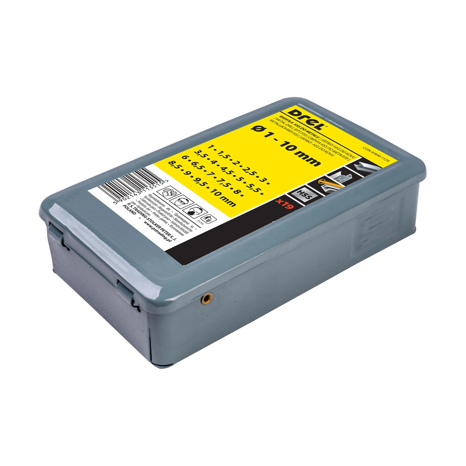 Univerzalni komplet svedrov za kovino DREL ponuja premere od 1 do 10 mm v 19 praktičnih delih. Svedri iz hitrorezenega jekla HSS zagotavljajo visoko natančnost, dolgo življenjsko dobo in stabilno delovanje tudi pri temperaturah do 600 °C. Primerni za jeklo, neželezne kovine, aluminij in plastiko. Dobavljeno v vzdržljivi kovinski kaseti za pregledno in varno shranjevanje.