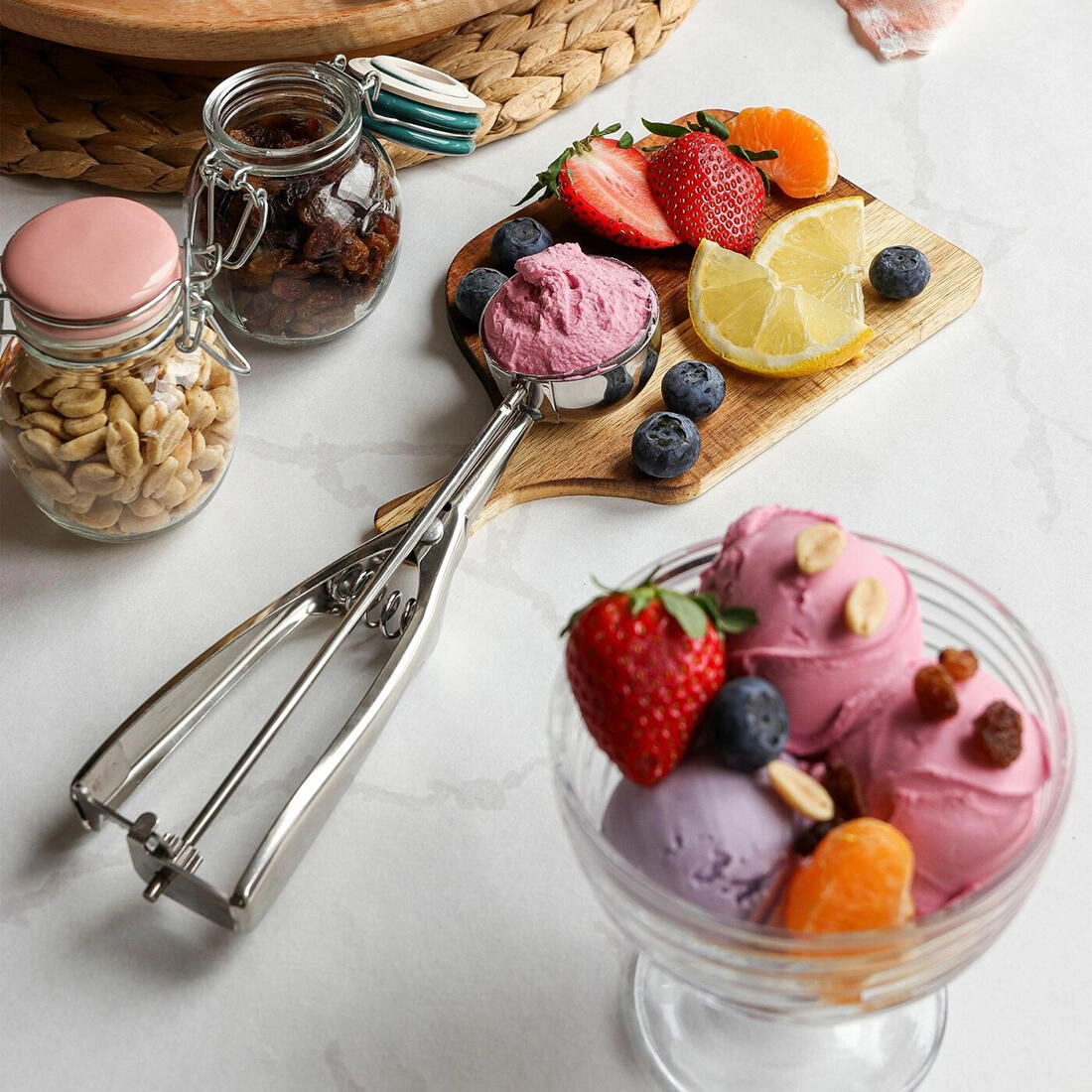Z 6 cm premera ustvarite lepo enakomerne kroglice sladoleda, sorbeta in drugih zamrznjenih dobrot. Odlična je za serviranje sladic na zabavah, družinskih srečanjih in pri vsakodnevni domači uporabi.