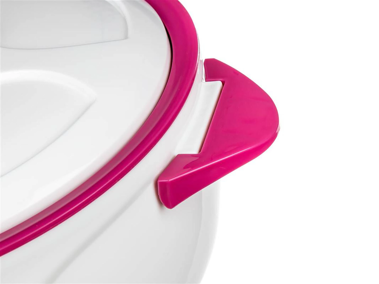 Primerna je za družinska kosila, žar piknike, praznovanja in vsakodnevno serviranje – juhe, priloge in meso ohrani dlje tople, solate in sladice prijetno hladne. Eleganten dizajn s cvetličnim motivom in rožnatimi detajli se poda v vsako kuhinjo.