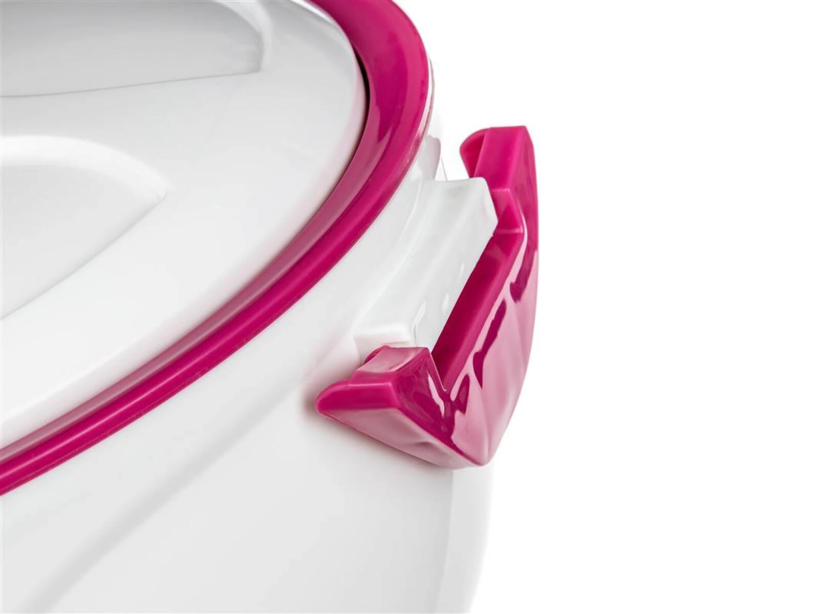 Termoposoda ROSE 1,5 l je idealen pomočnik za serviranje in prenašanje pripravljenih jedi. Notranja nerjaveča posoda zagotavlja higieno in enostavno čiščenje, medtem ko PUR pena med stenami nudi odlično toplotno izolacijo. Zahvaljujoč preklopnim ročajem in tesno prilegajočemu se pokrovu se udobno prenaša in odlično ohranja temperaturo jedi.