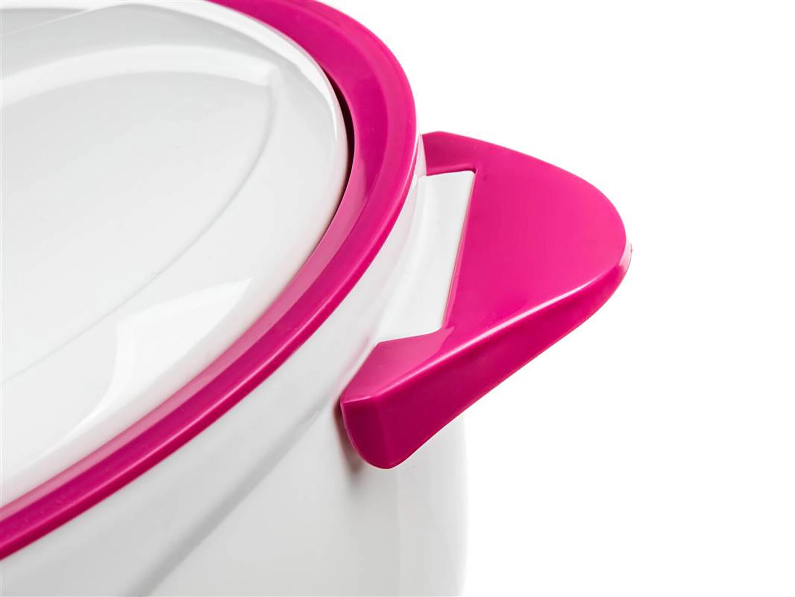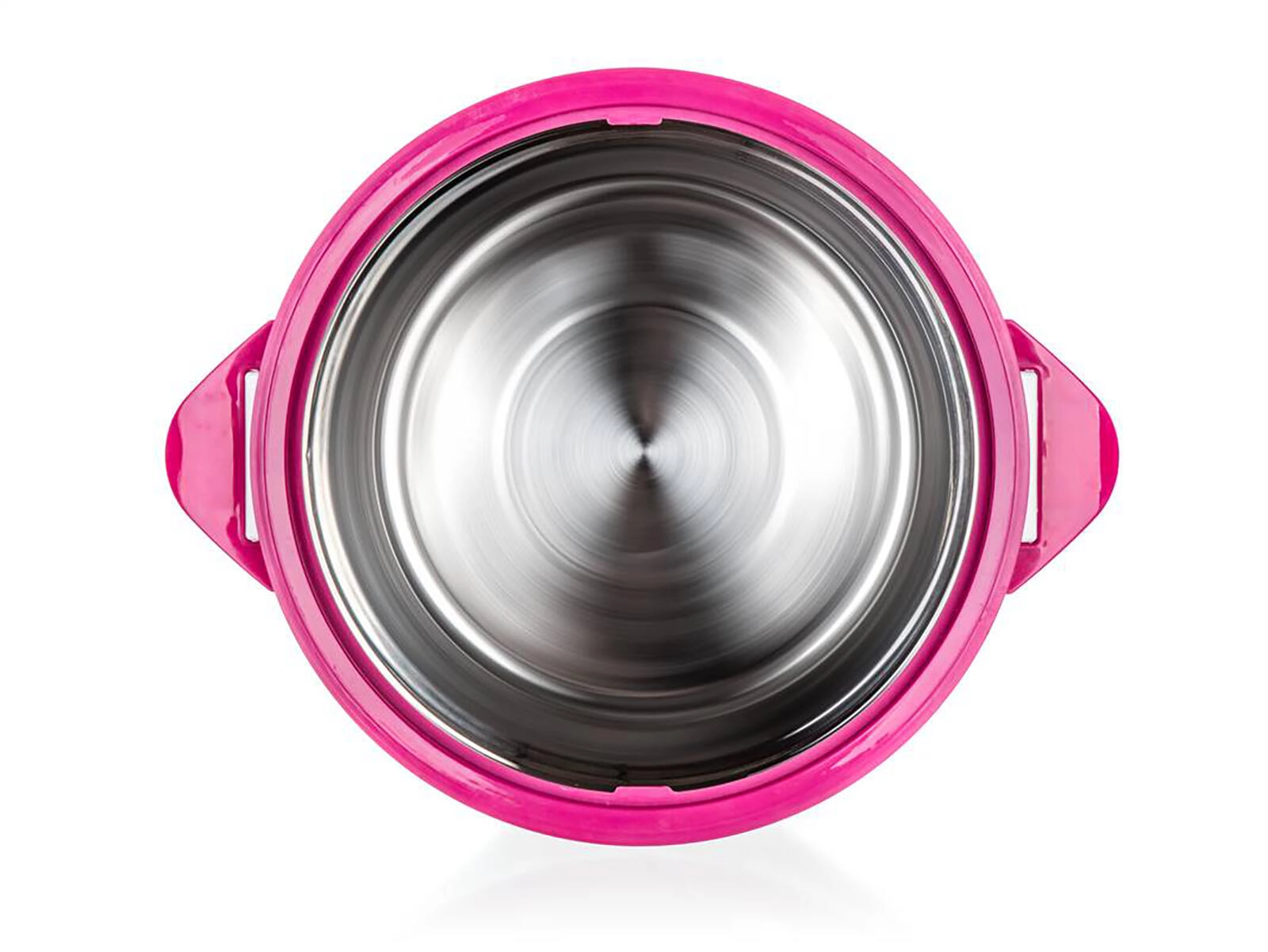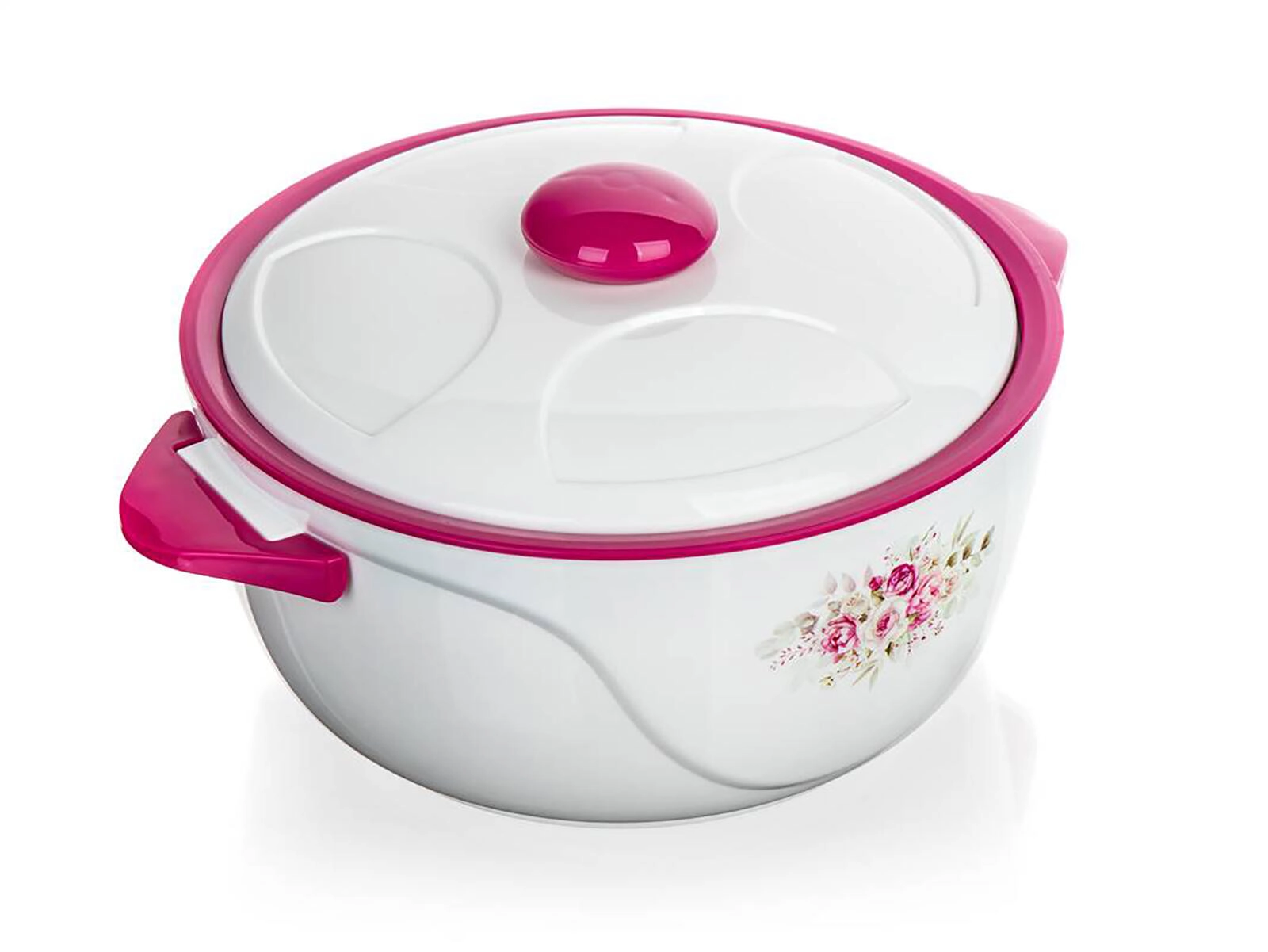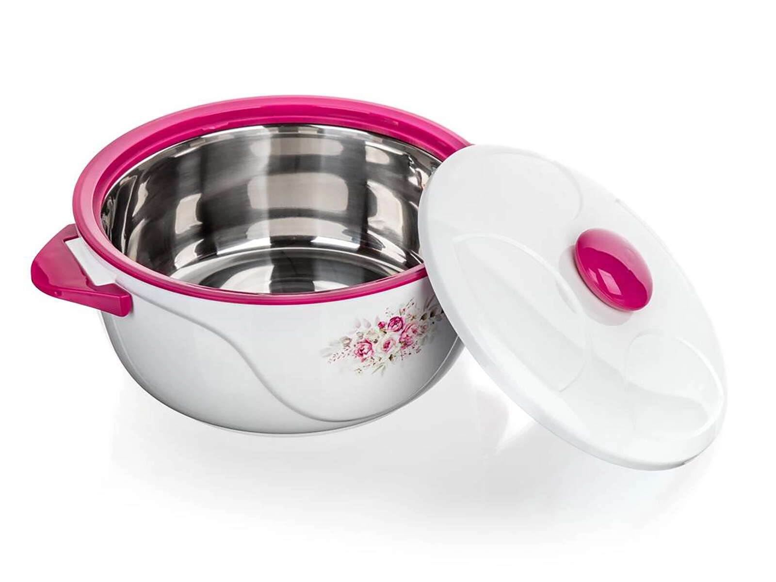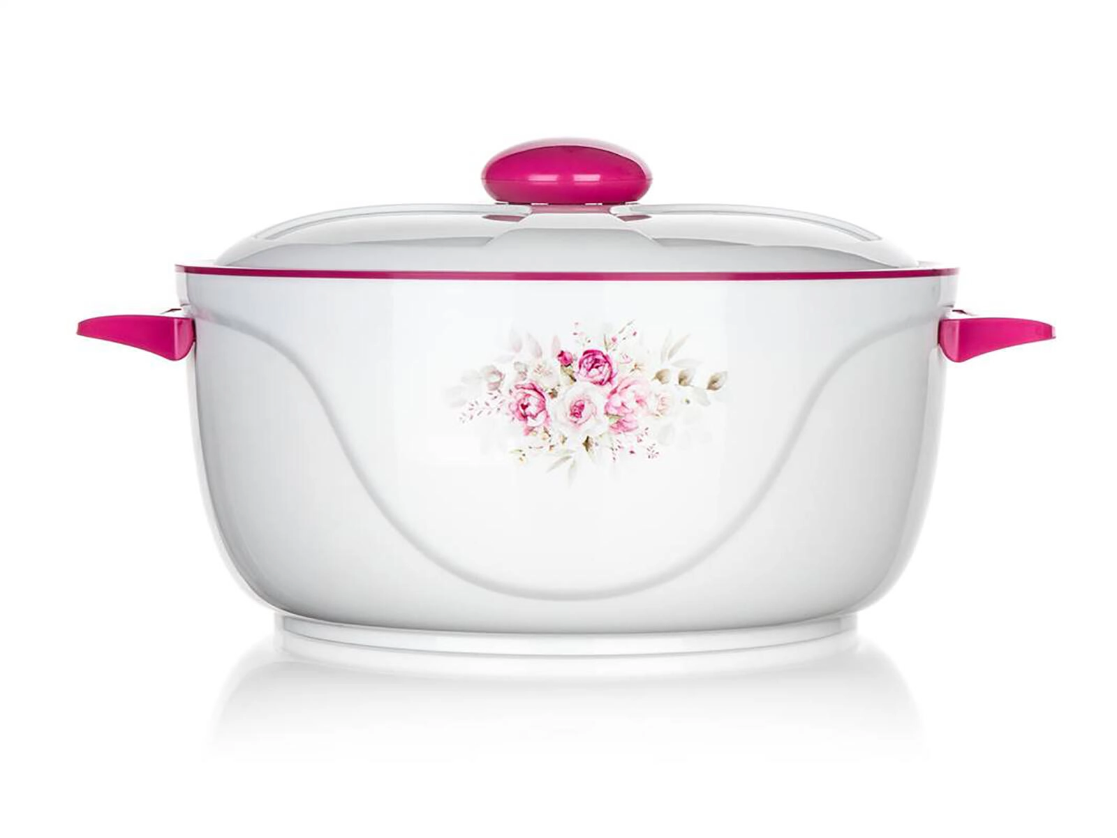 Termoposoda ROSE 3,5 l je praktičen pomočnik za vsako kuhinjo. Kombinacija notranje nerjaveče vložke in PUR izolacije zanesljivo ohranja temperaturo vaših jedi pri shranjevanju in prenašanju. Stilska zasnova s cvetličnim motivom in rožnatimi detajli lepo dopolni mizo pri serviranju.