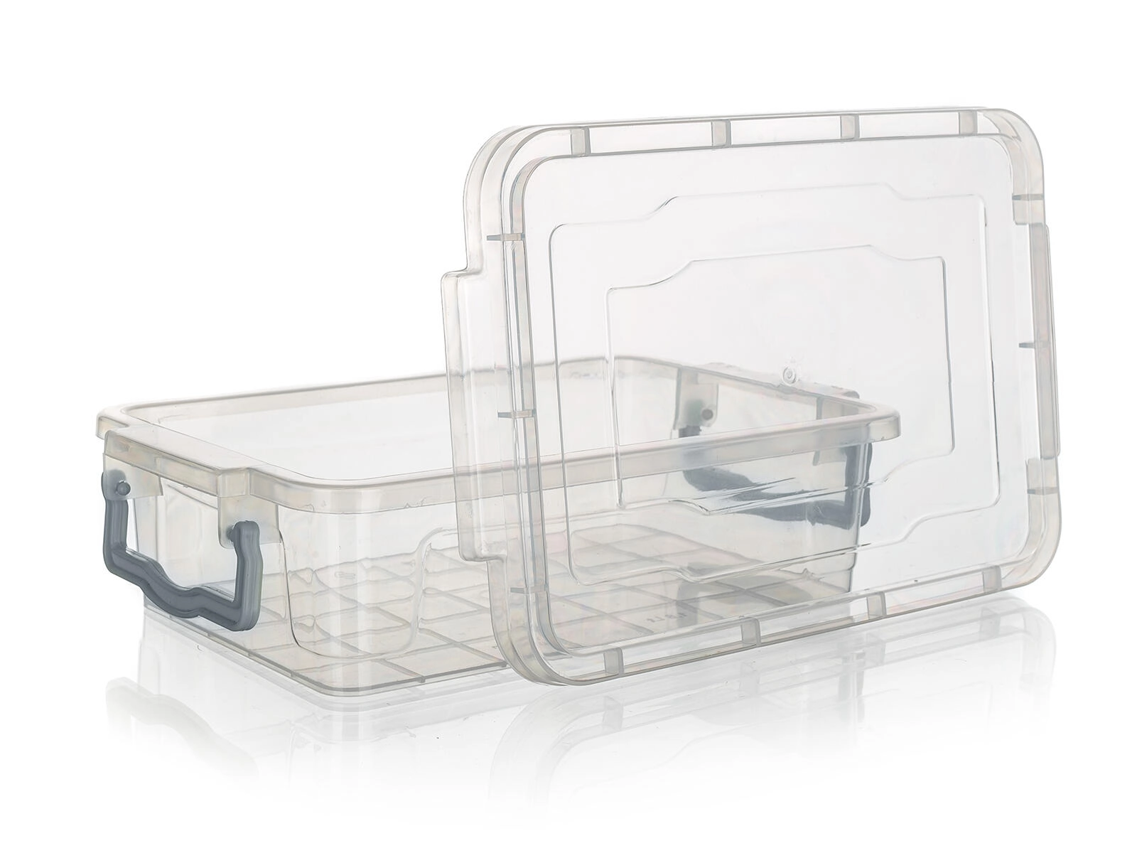 Pravokotna posoda Gema zagotavlja zanesljivo in higiensko shranjevanje sestavin, pripravljenih jedi in prigrizkov. Zaradi prozorne plastike vedno vidite, kaj je v notranjosti, praktični turkizni ročaji pa olajšajo rokovanje in prenašanje.